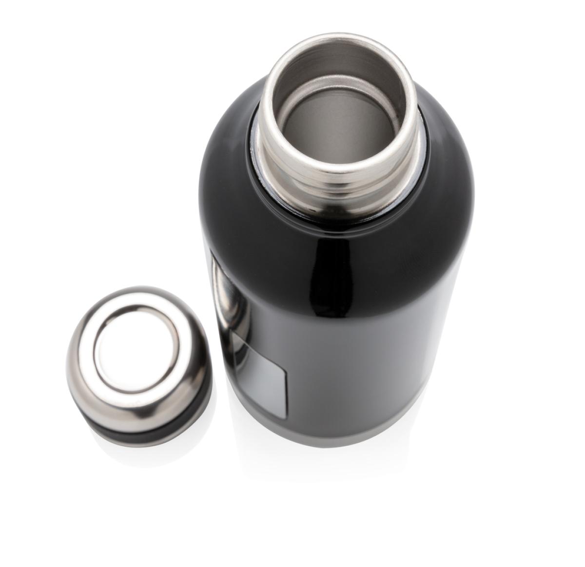 Leakproof vacuum insulated bottle with twist off lid. With unique logo position on the front. 304 stainless steel inner and 201 stainless steel outer keeps your drinks hot 5h and cold 15h. Content: 500ml.