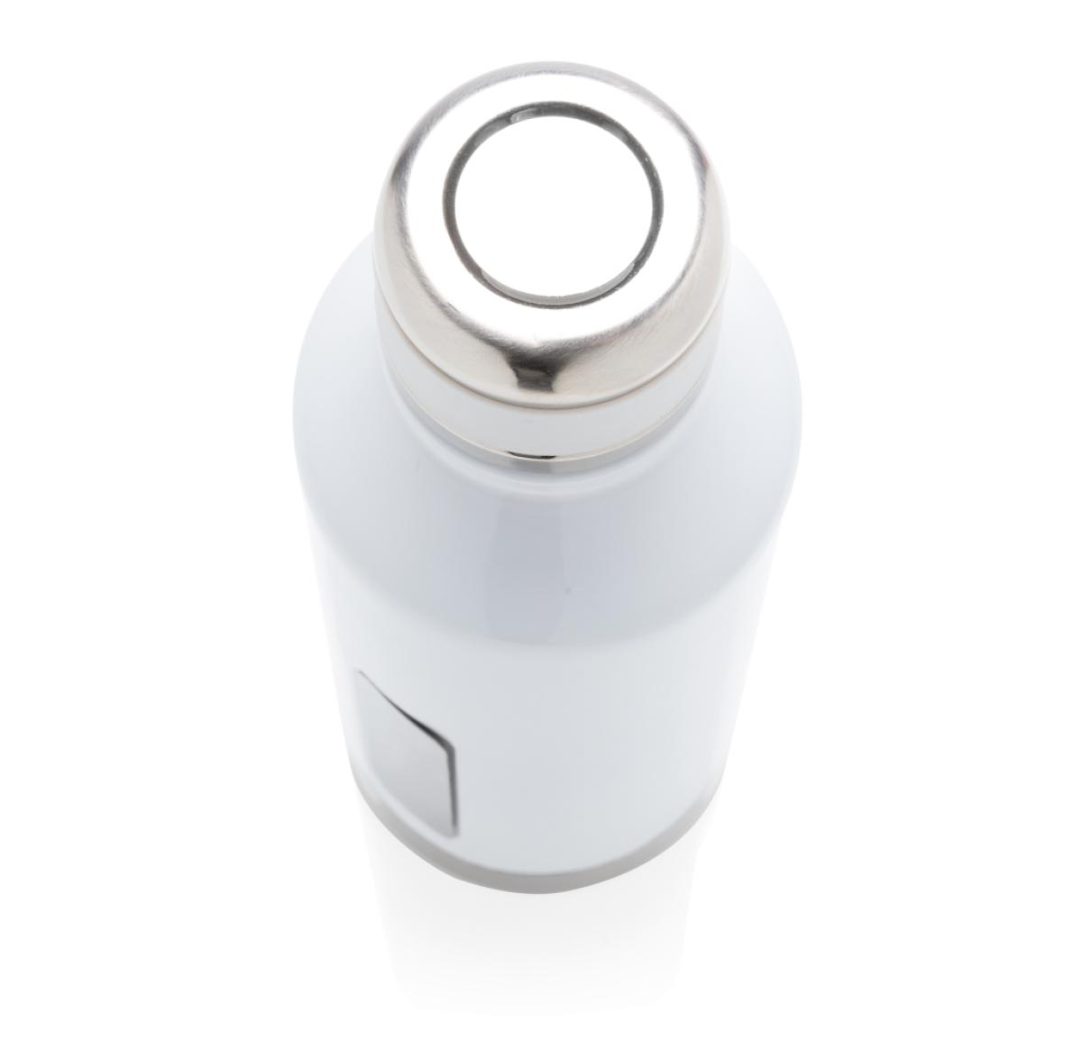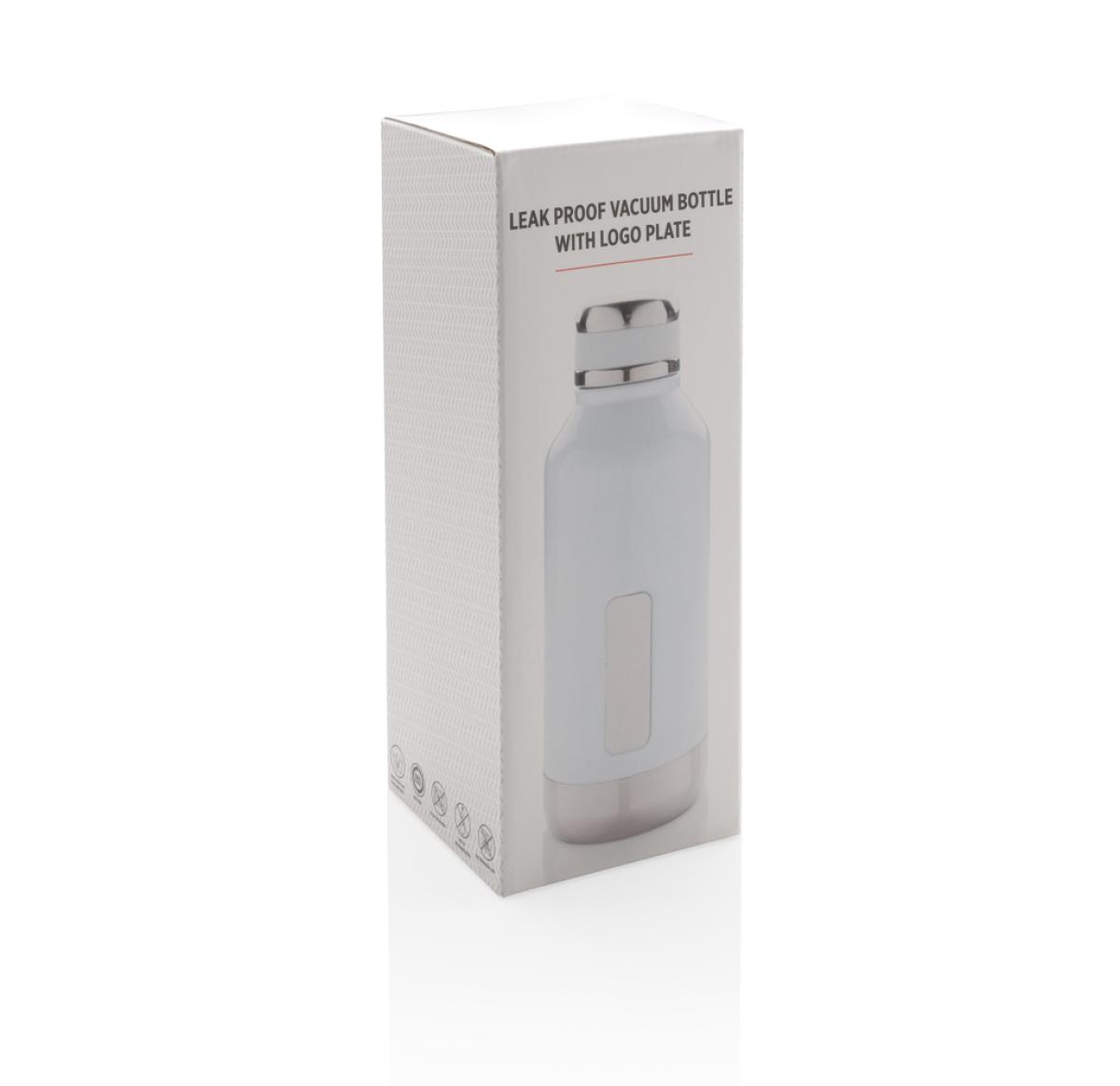 Leakproof vacuum insulated bottle with twist off lid. With unique logo position on the front. 304 stainless steel inner and 201 stainless steel outer keeps your drinks hot 5h and cold 15h. Content: 500ml.