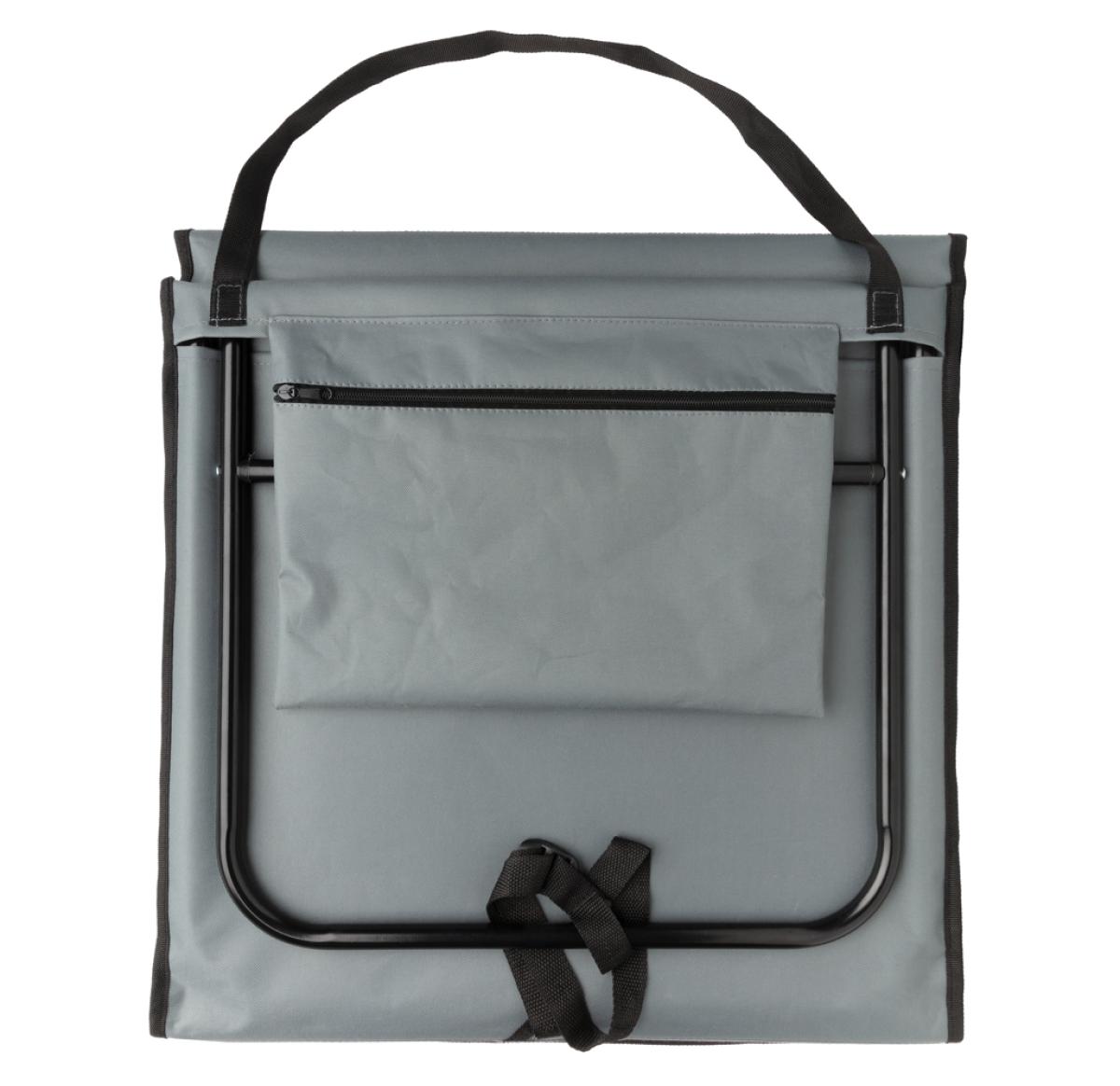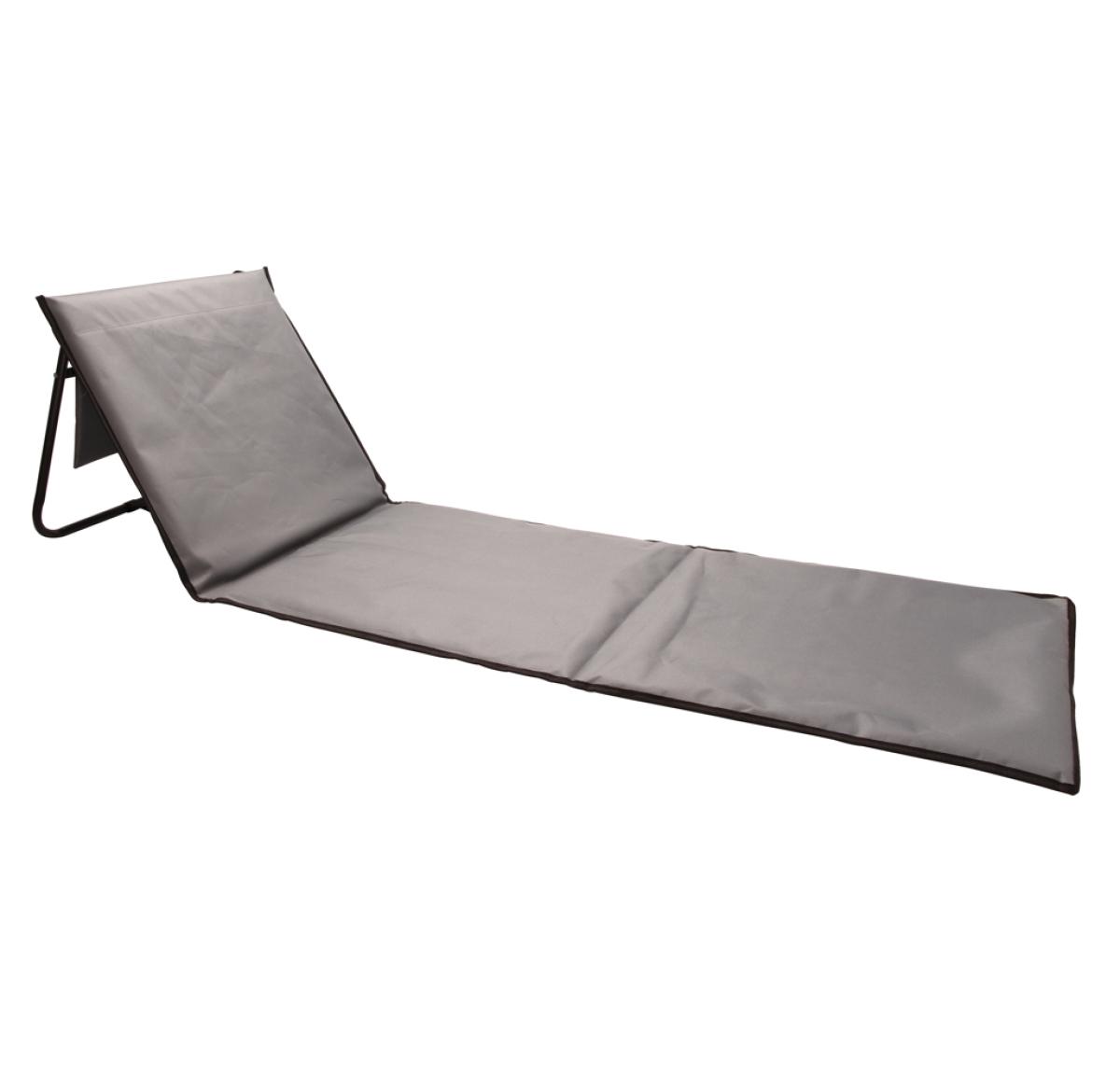 Lightweight and portable, this lounge chair made of 600D polyester stretches out, allowing you to lounge back with the sturdy metal frame making for a comfy backrest. A zippered pouch at the back takes care of anything from shades to your phone or your su