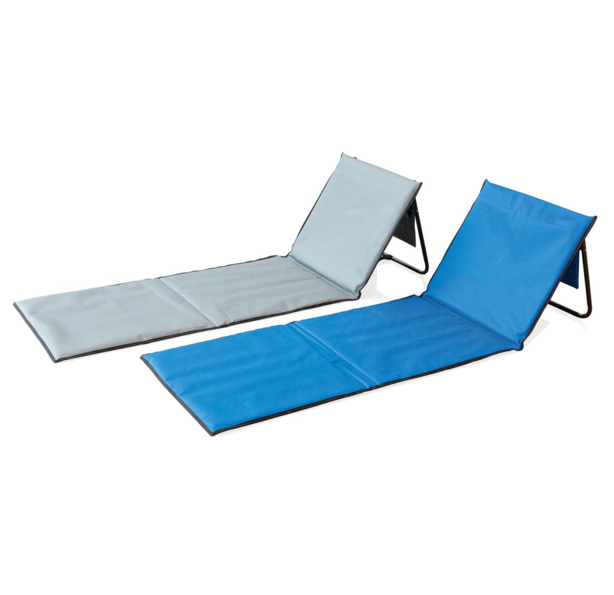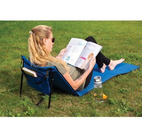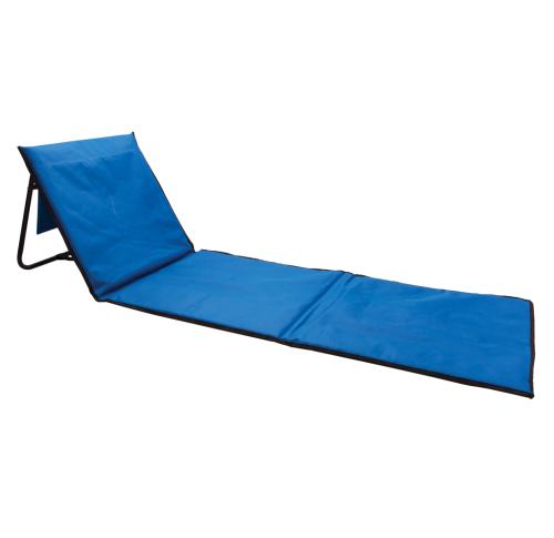 Lightweight and portable, this lounge chair made of 600D polyester stretches out, allowing you to lounge back with the sturdy metal frame making for a comfy backrest. A zippered pouch at the back takes care of anything from shades to your phone or your su