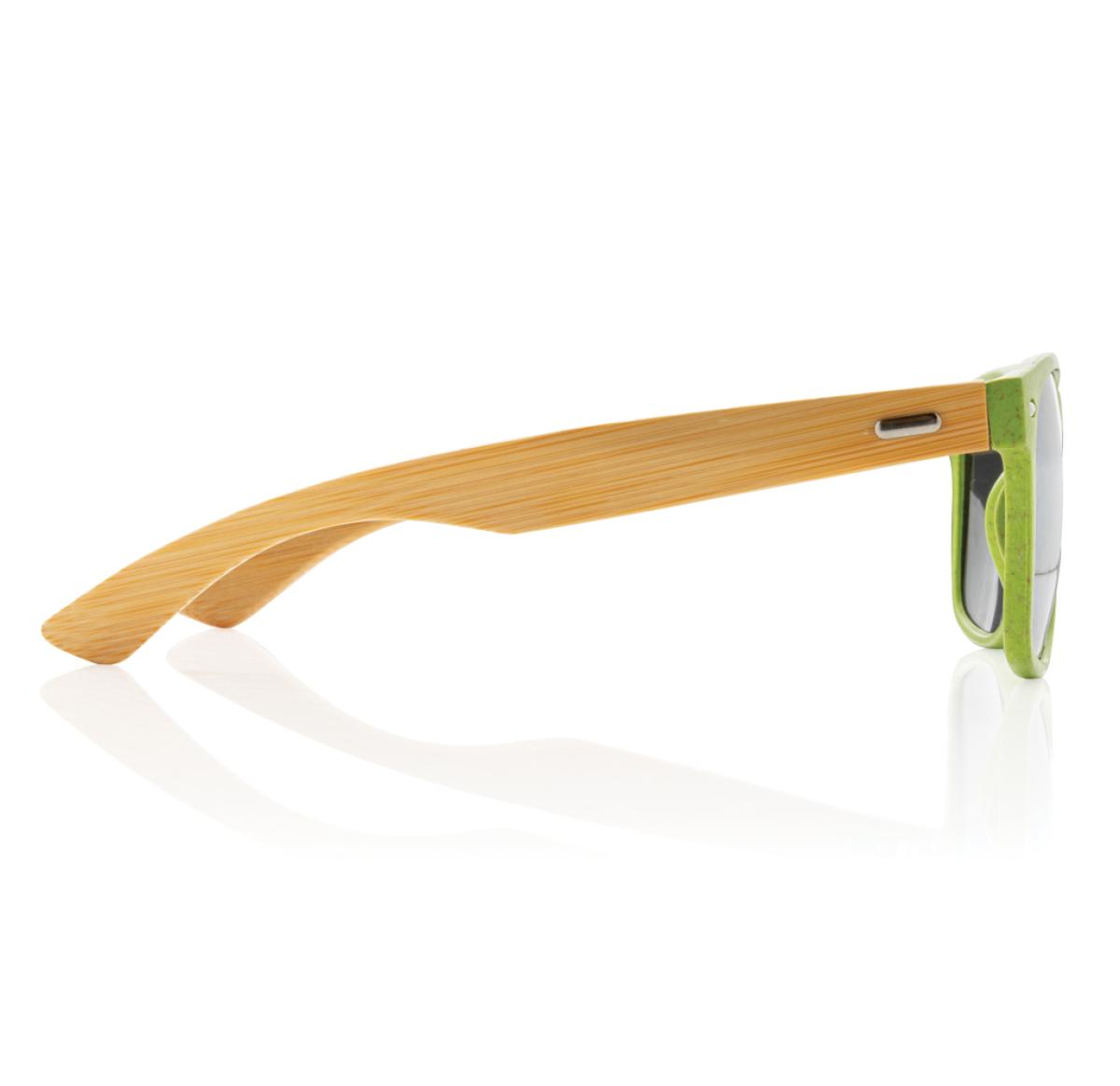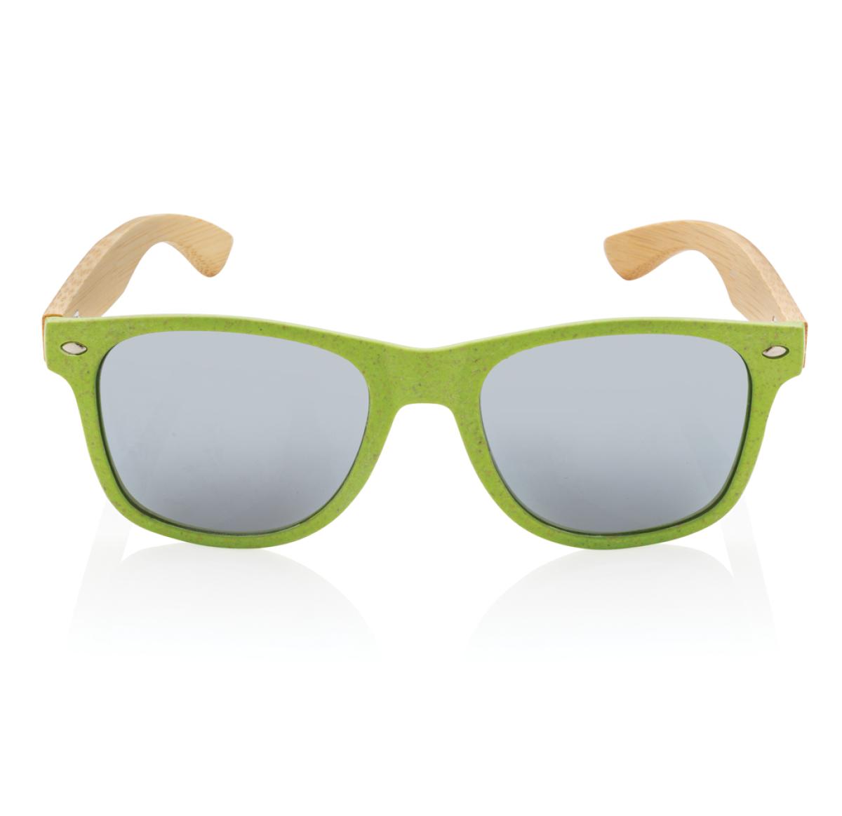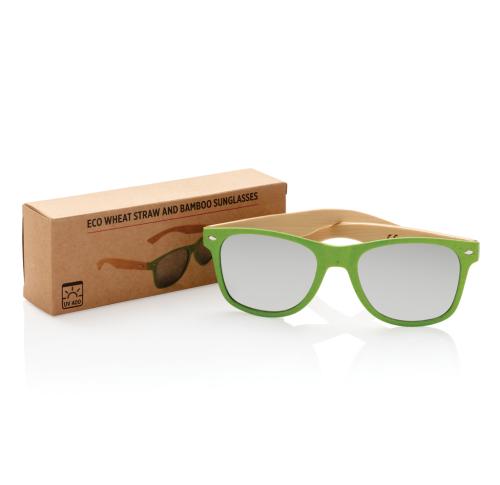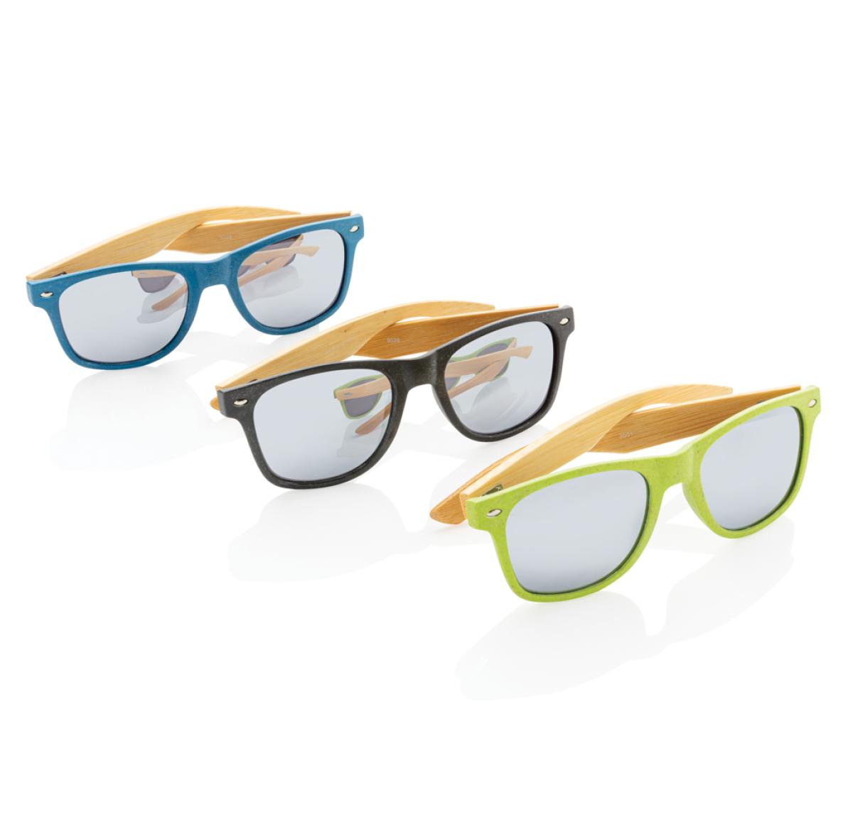 Sunglasses with frame made out of wheat straw fibre and bamboo. Packed in kraft paper box. With UV 400 glasses.