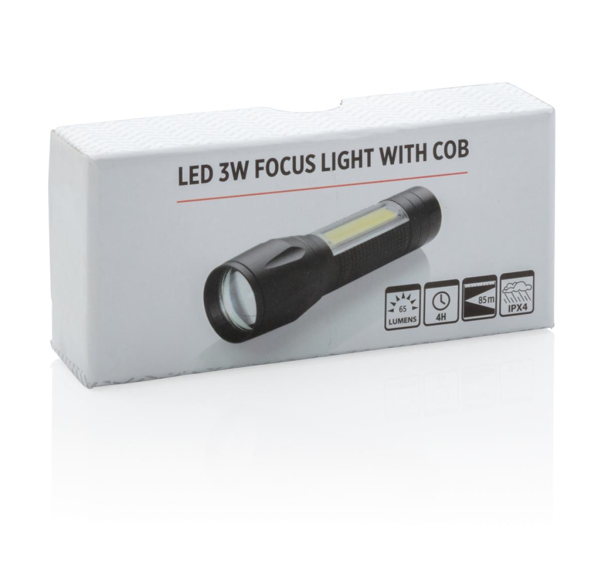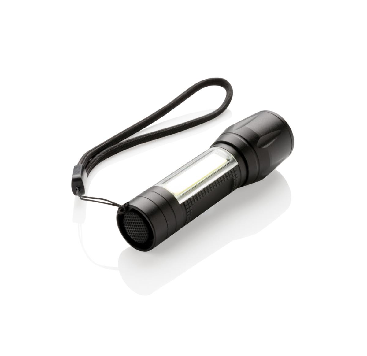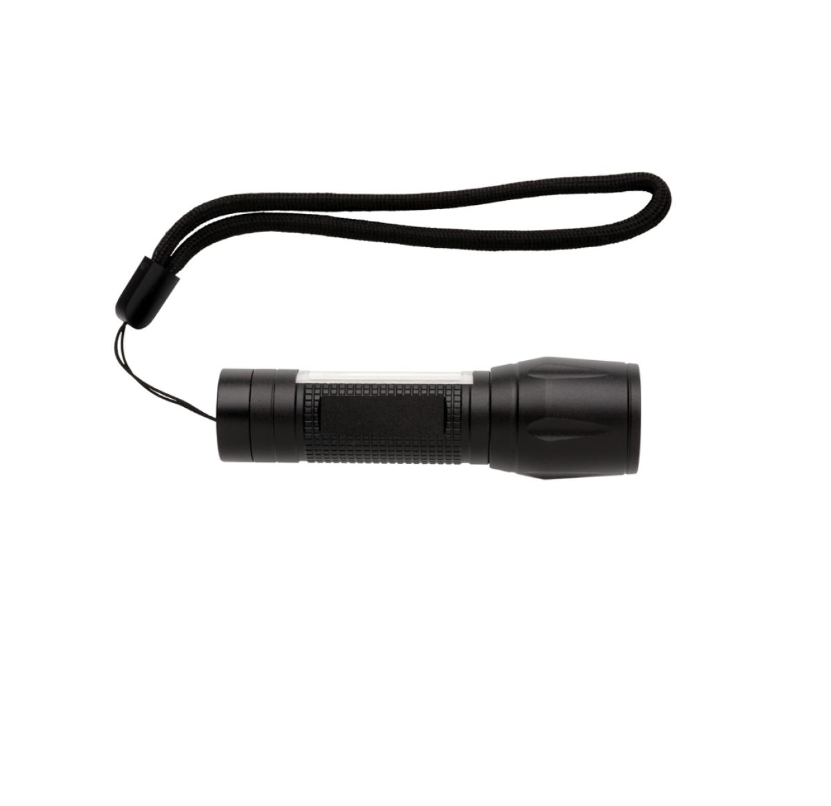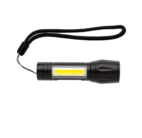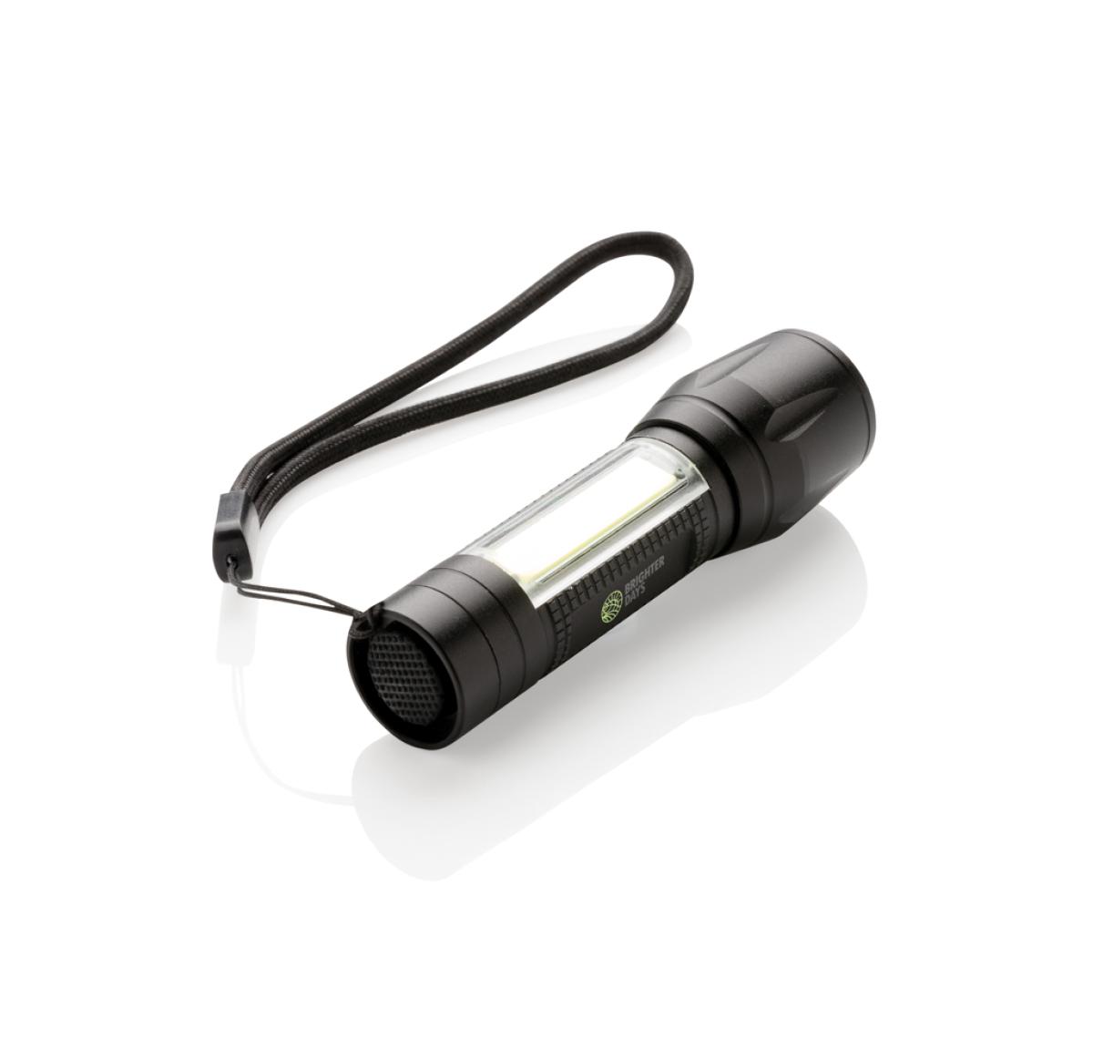 Pocket size but high performance aluminium LED and COB light. Fits easily in your pocket to produce a strong 85 metre beam of light wherever you need it. The 3W led light produces 65 lumen and the COB light 37 lumen. Including zoom function and 3 light mo