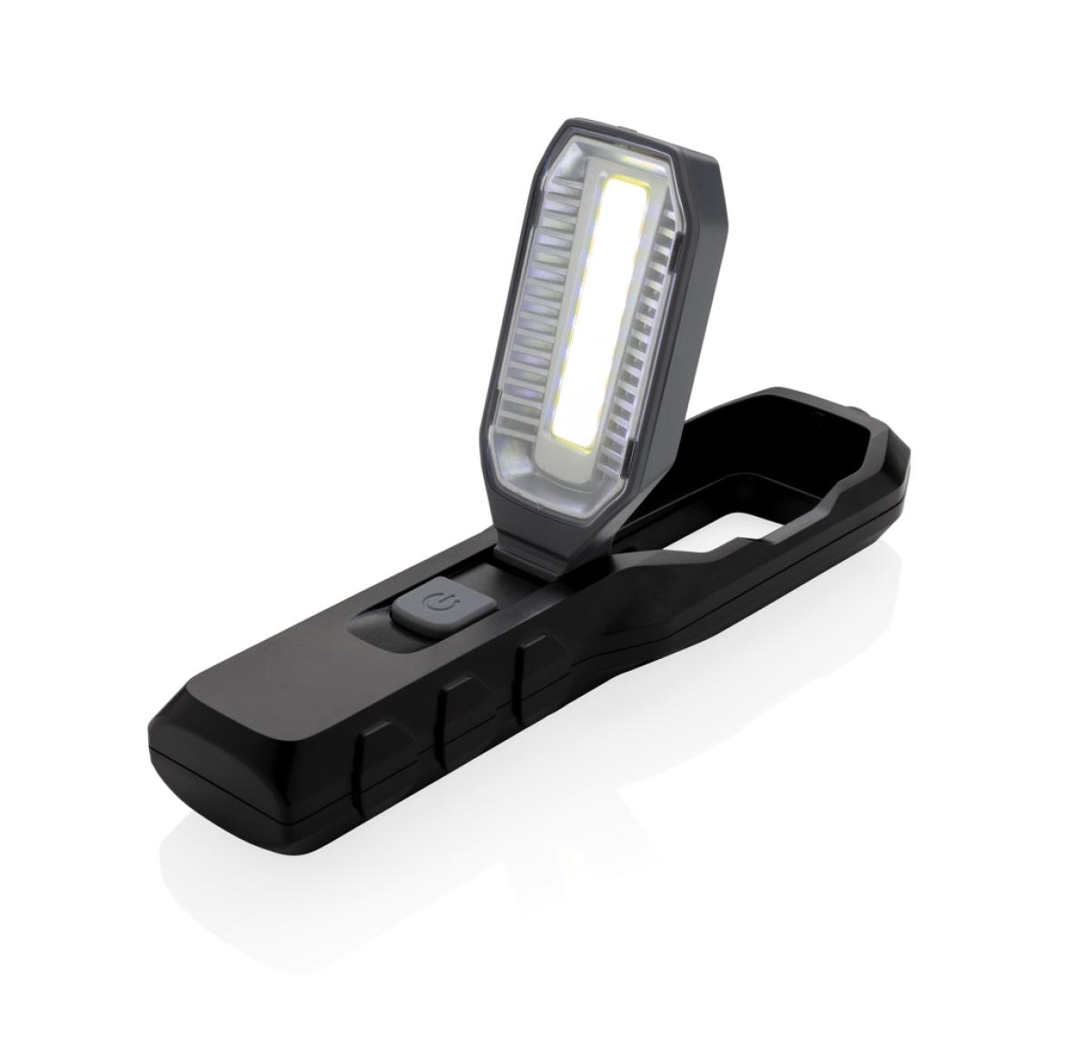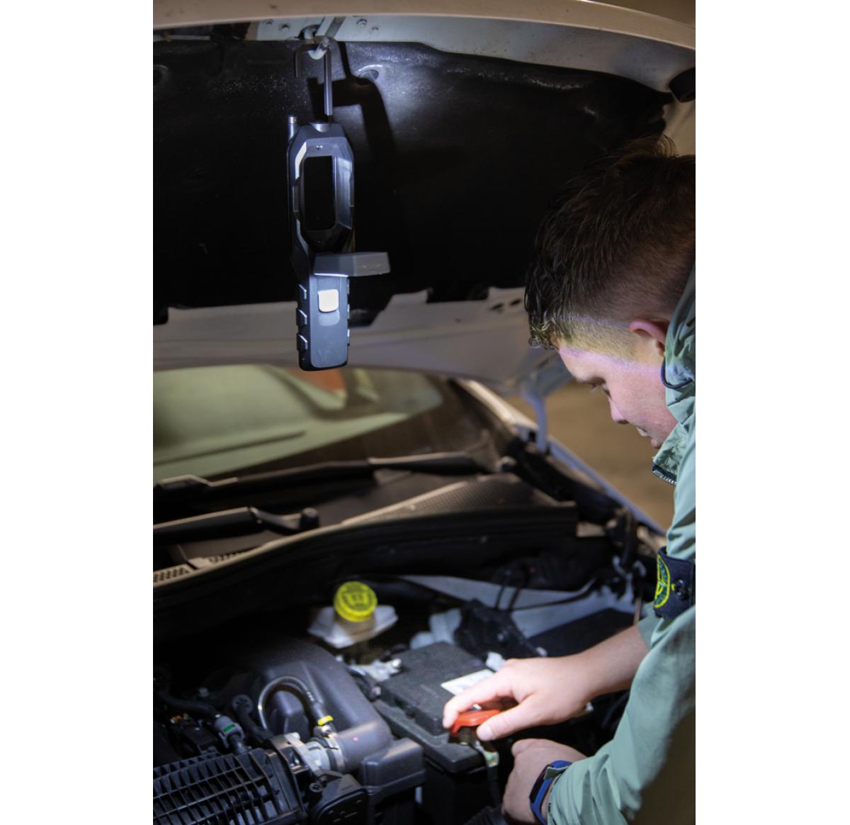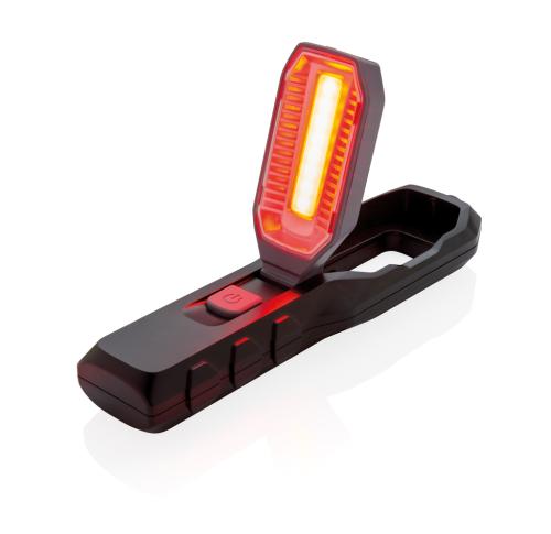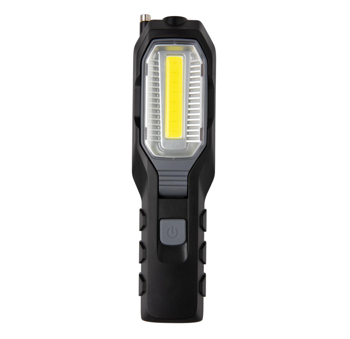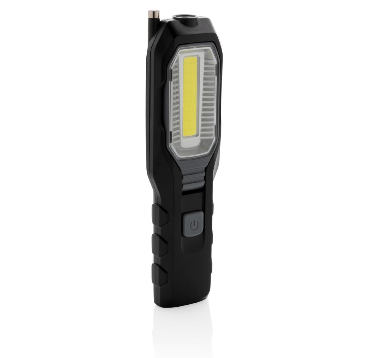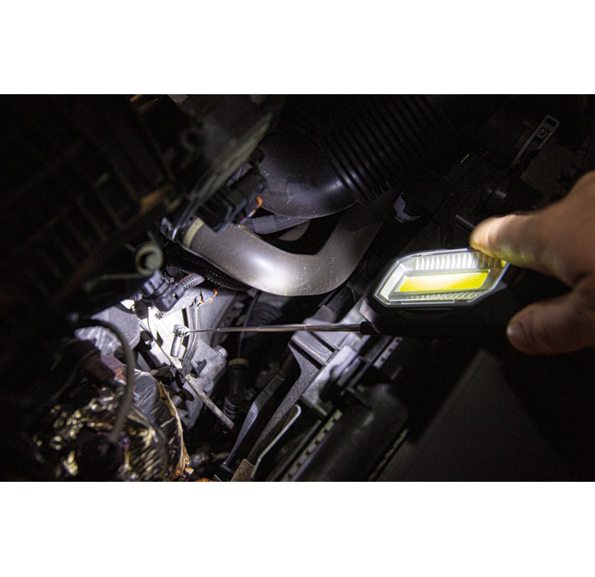 Multi-function work light with 1W LED light and COB light. The COB light has an adjustable angle to light up your work space. With magnet on the back to attach to metal surfaces and extendable 20 cm telescope with magnet to pick up small objects like scre