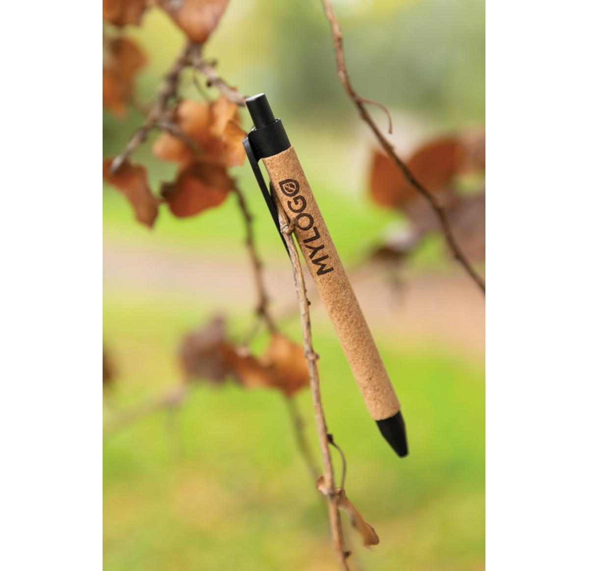Go green! This recycled ballpen is made out of wheat straw with cork. Including ca. 1200m writing length German Dokumental® blue ink refill with TC-ball for ultra smooth writing.