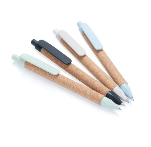 Go green! This recycled ballpen is made out of wheat straw with cork. Including ca. 1200m writing length German Dokumental® blue ink refill with TC-ball for ultra smooth writing.