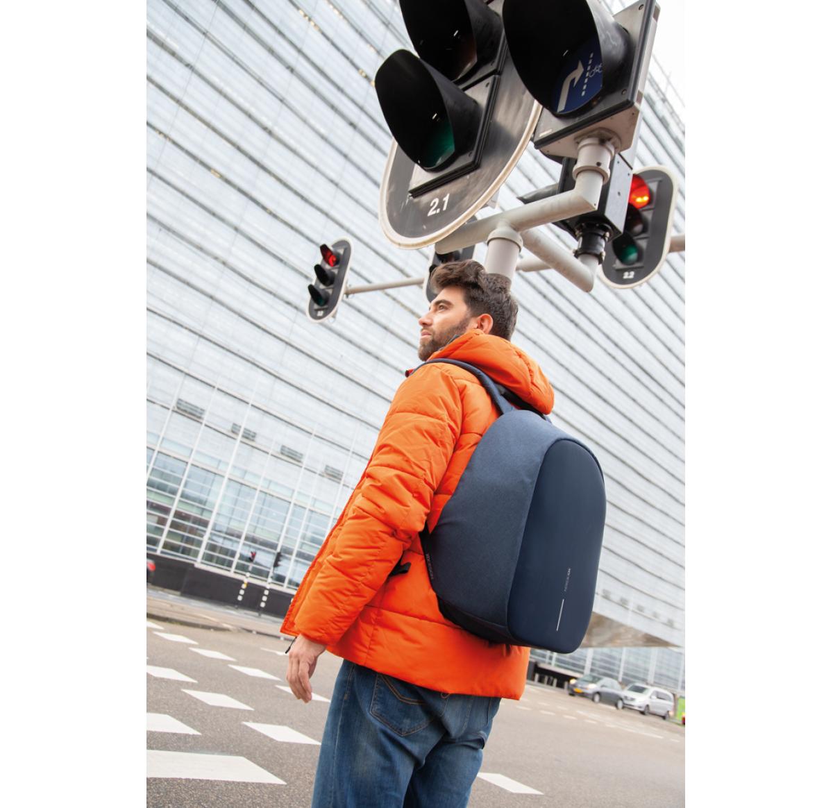 Bobby Pro will keep you safe, organised and connected while being sustainable. This premium model of the Bobby Backpacks has many new and unique features. It has adjustable internal dividers which allow you to divide your backpack content in many different ways. The patented fid lock system on the shoulder strap gives you quick and easy access to your phone or bottle/coffee cup. The backpack also has an extendable key chain, hidden zippers, RFID protected pockets and cut proof PP board protection. Registered design®
