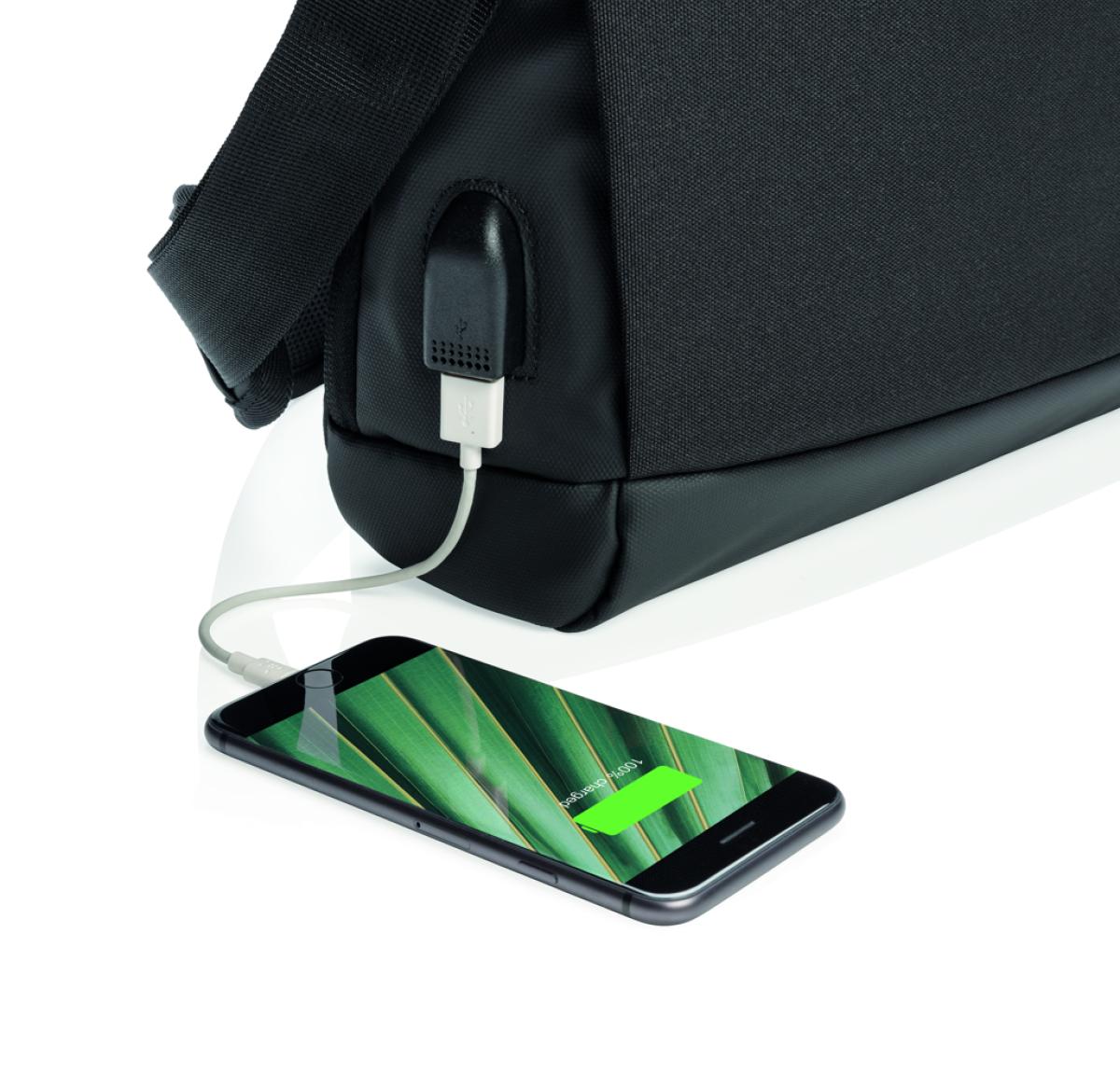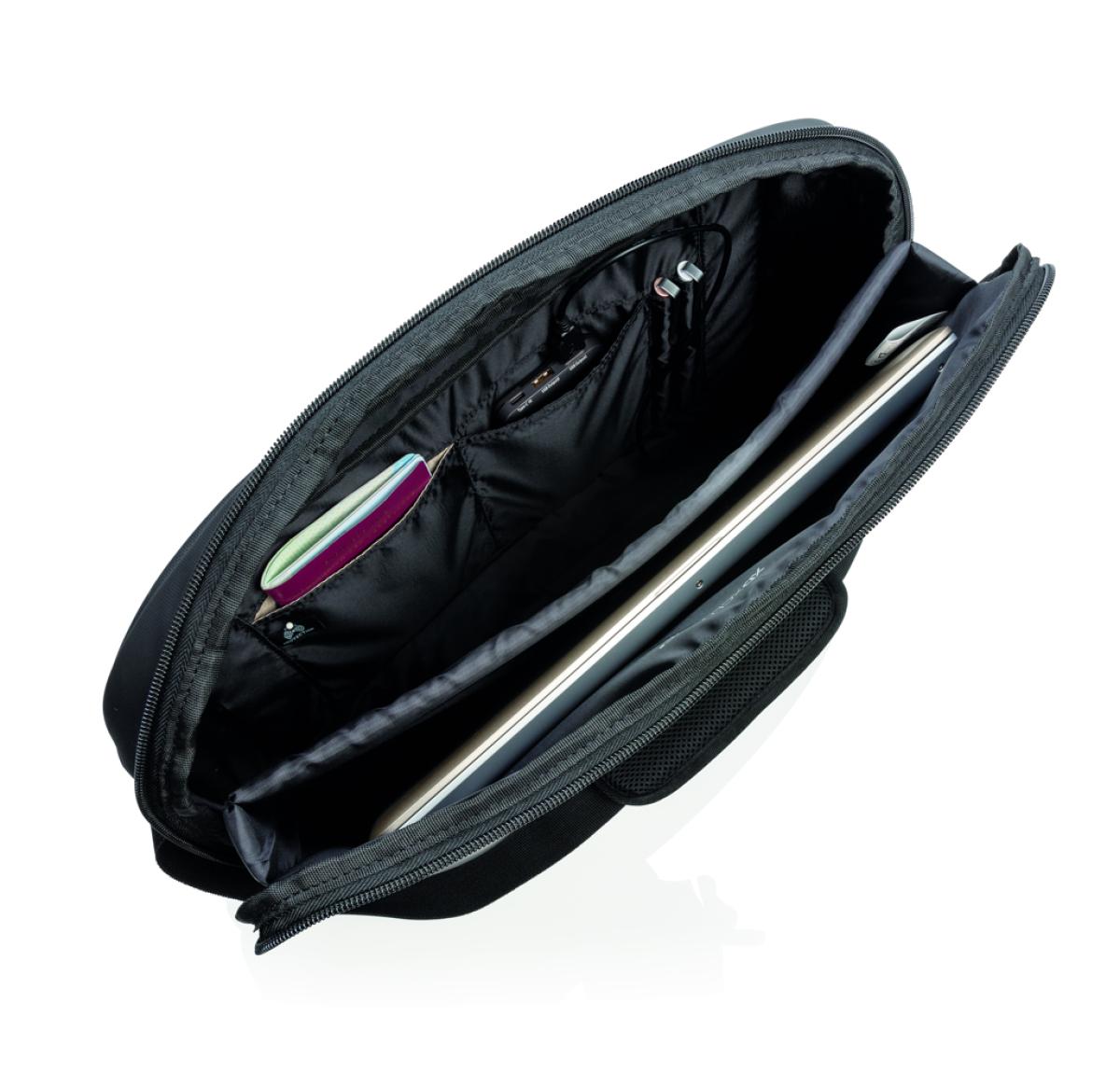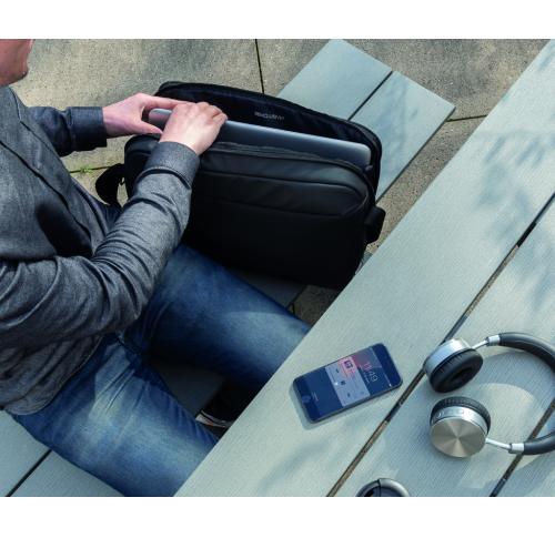This 15.6” laptop bag offers comfortable style and safe storage for your laptop and tablet. With pockets to organise all of your tech gadgets and personal accessories. RFID safe sleeve for your wallet and passport. Connect your powerbank easily to the int