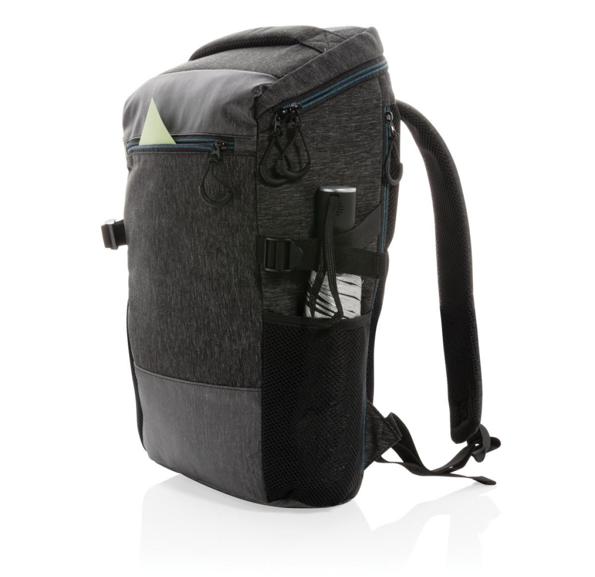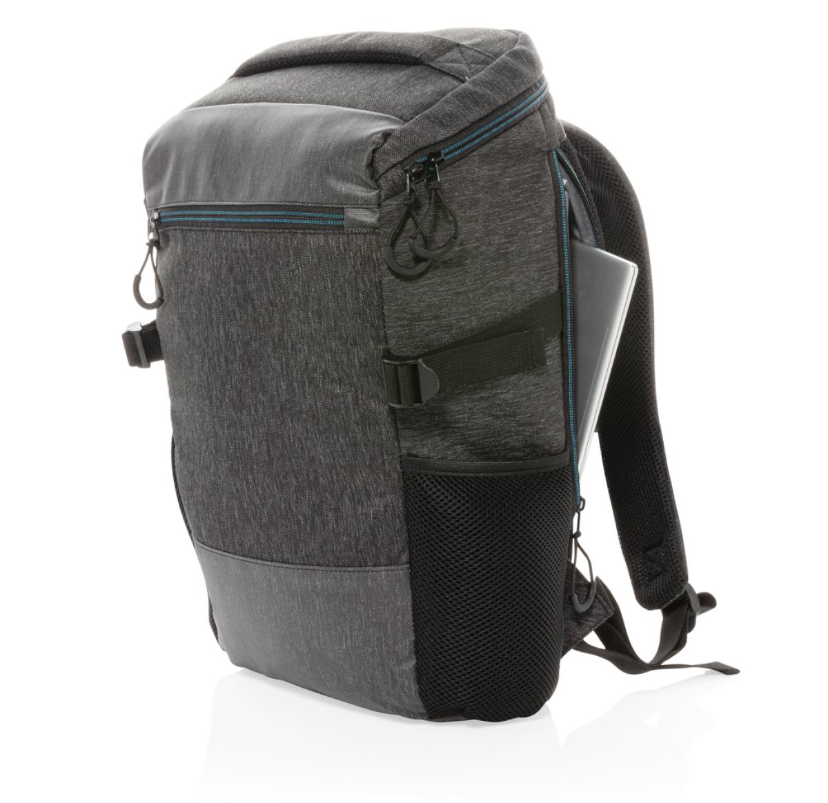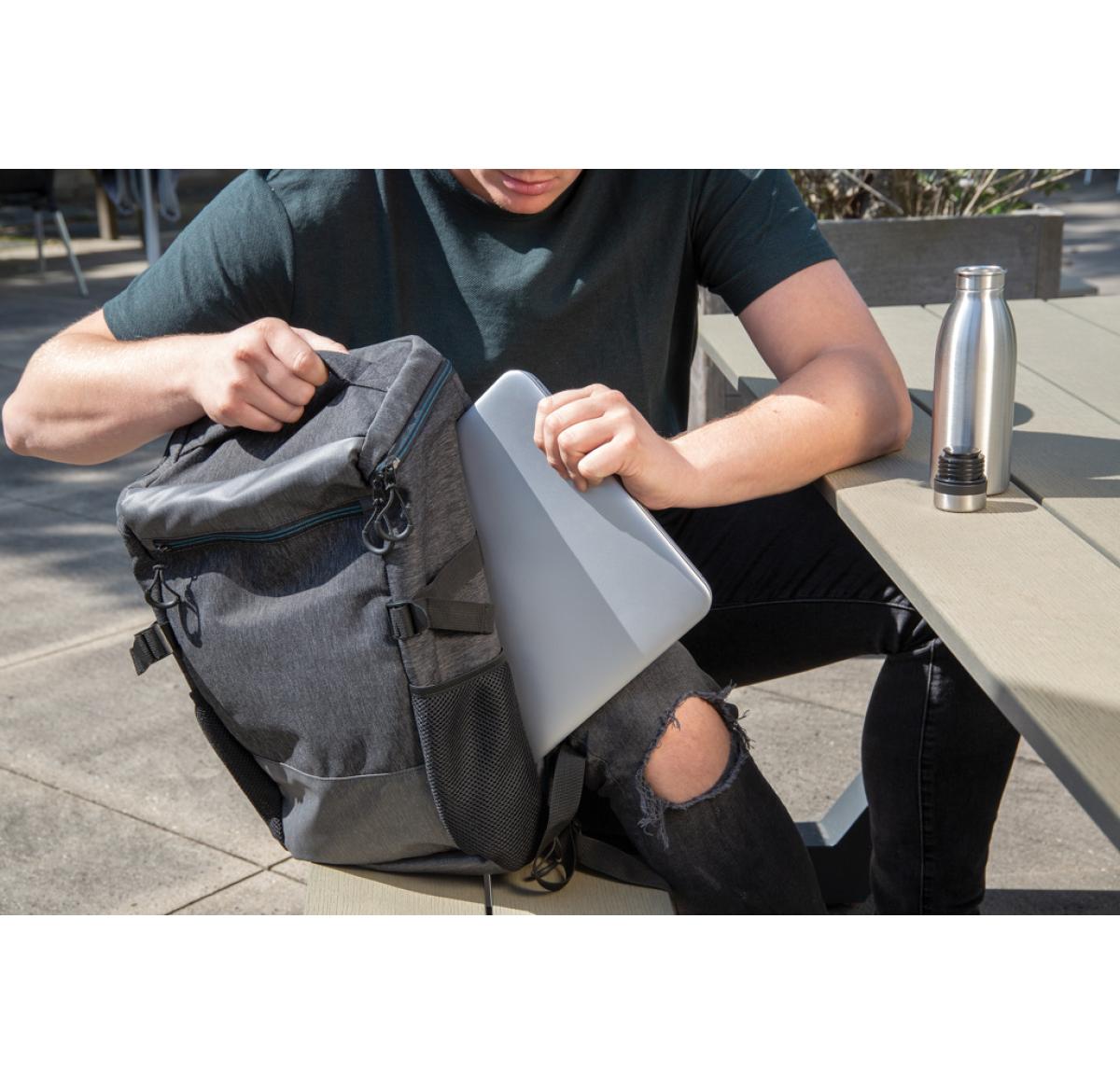 This 900D easy access laptop backpack has all the space you'll need in a day bag or carry-on. The roomy main compartment has a 15.6" laptop pocket and a small pocket to hold quick grab items. The big zipper opening makes it easy to see what's in your back