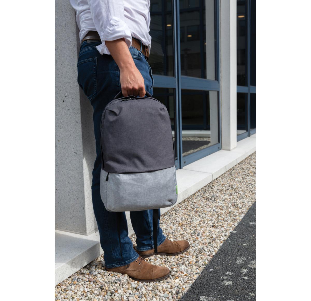 Be ready on the go with your laptop and other must-haves packed safely and stylishly inside this slim backpack. This duo colour backpack is made from RPET and features a minimalistic design. Fits a 15.6" laptop. RFID pocket inside. PVC free. Exterior: 100