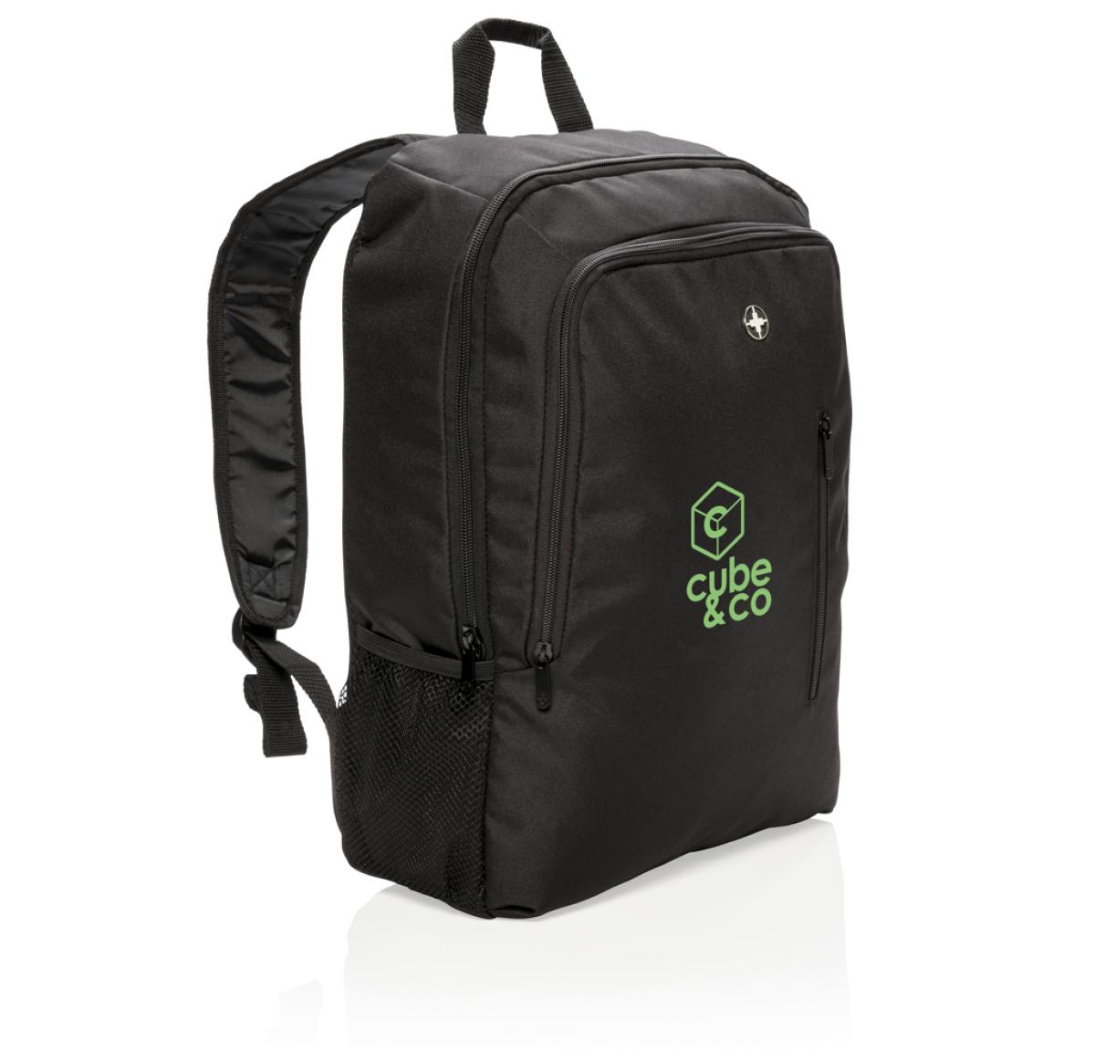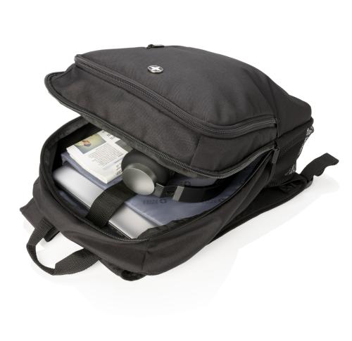 Streamlined styling and intelligently placed features add up to a minimalist footprint with this 600D & 1680D polyester backpack. 1 big main compartment sized to fit laptops with up to 17 inch displays. Second compartment with practical organisation for e
