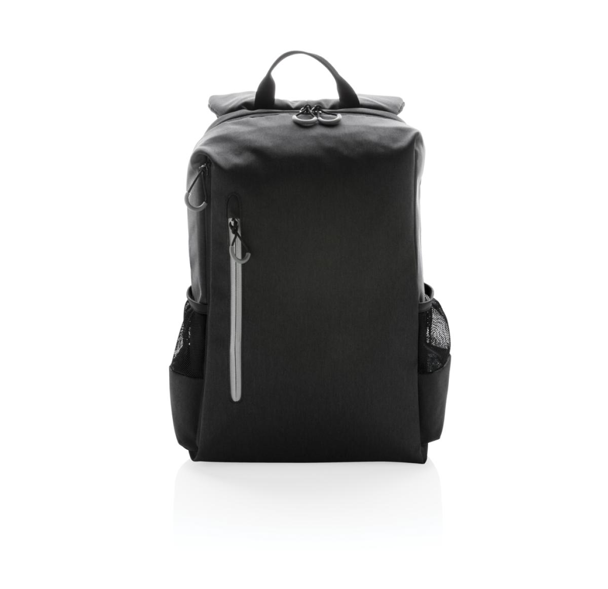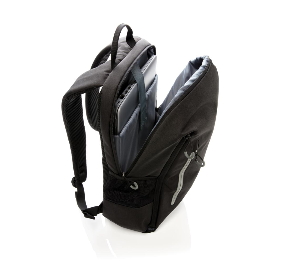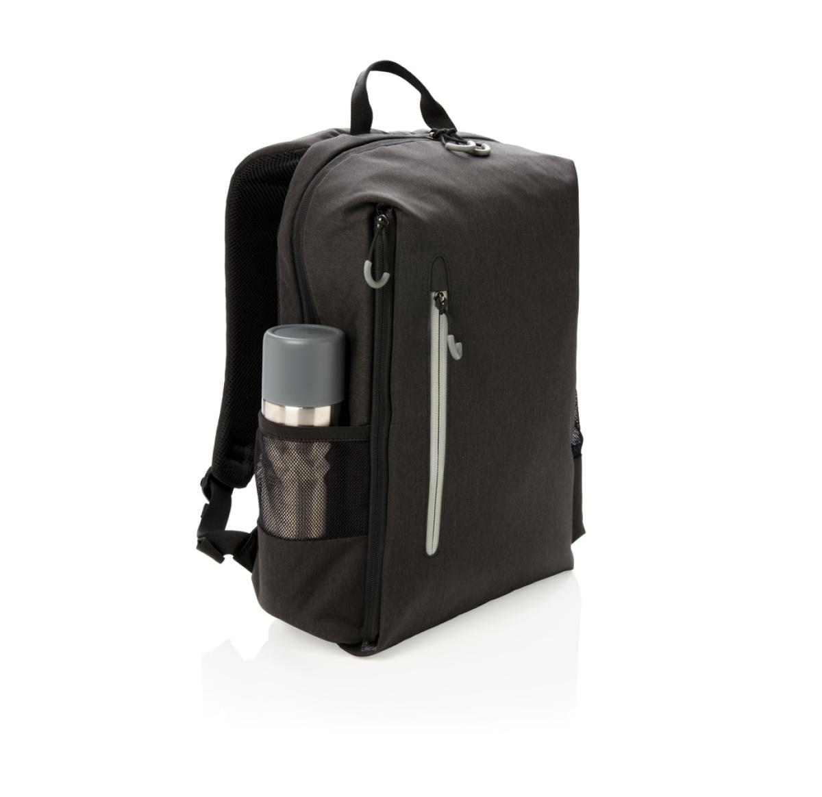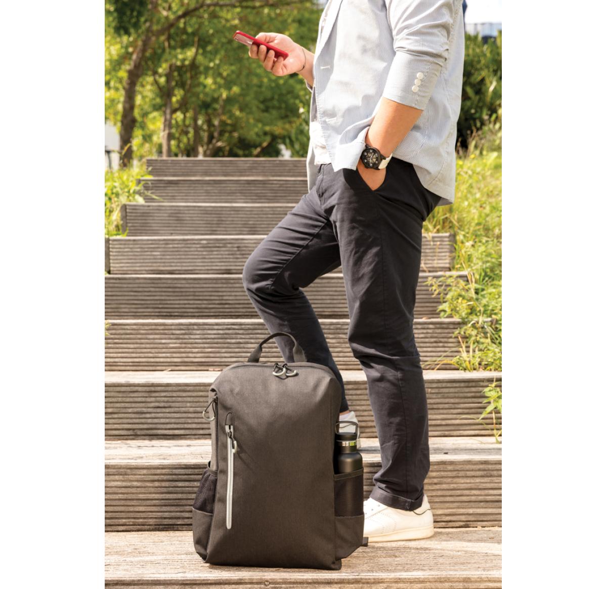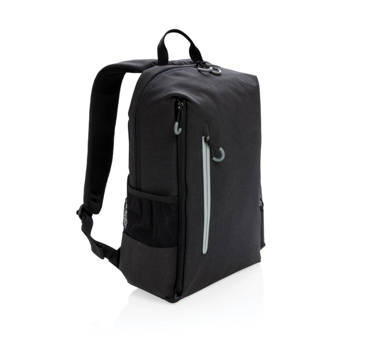 Simple, practical and durable everyday backpack with 2 side pockets for water bottles or your umbrella. Convenient USB output on the strap. Padded 15.6" compartment for laptop computer as well as several spacious compartments and RFID protected sleeve poc