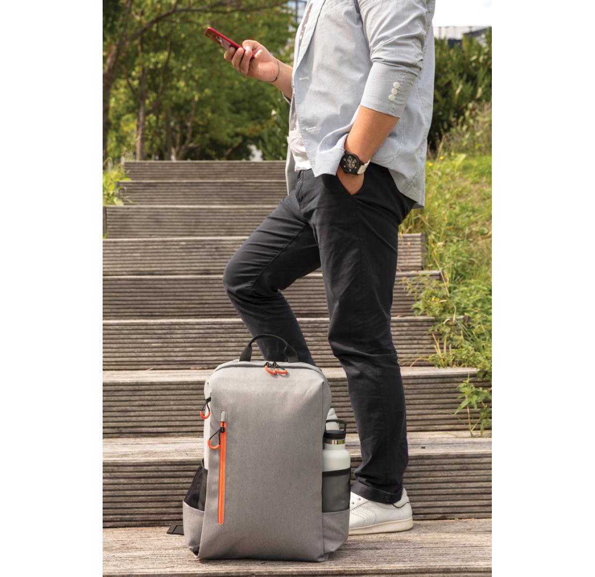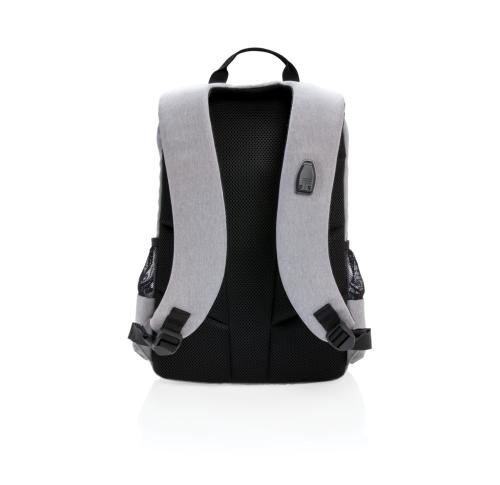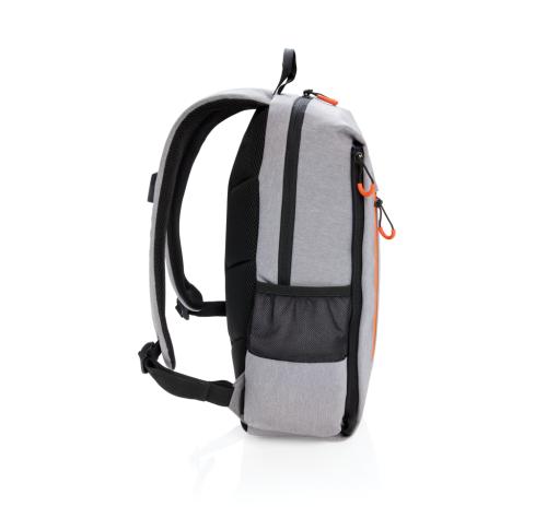 Simple, practical and durable everyday backpack with 2 side pockets for water bottles or your umbrella. Convenient USB output on the strap. Padded 15.6" compartment for laptop computer as well as several spacious compartments and RFID protected sleeve poc