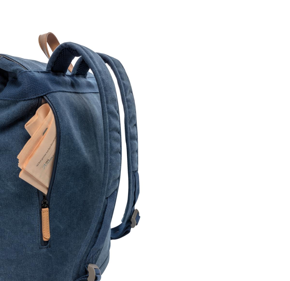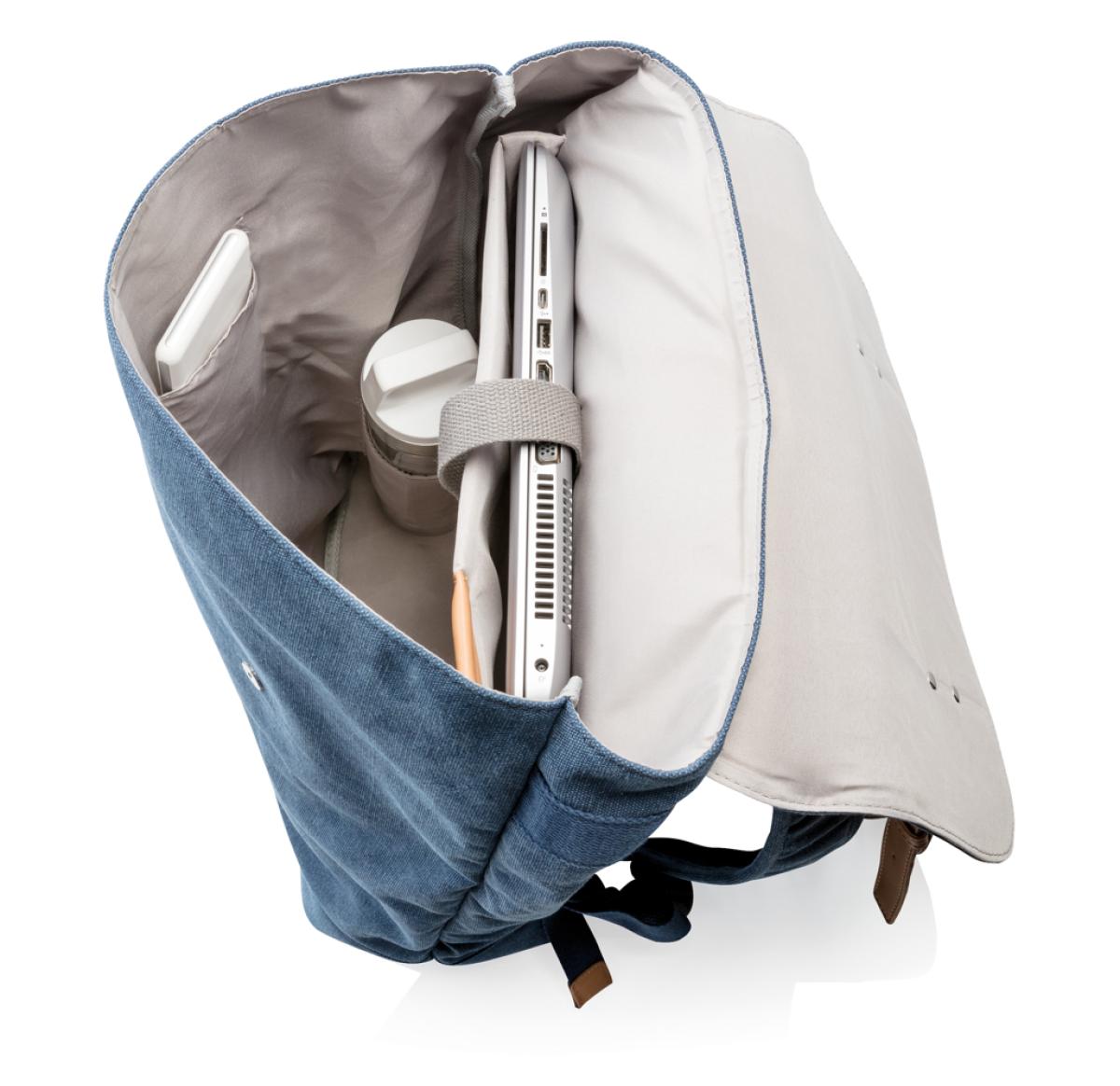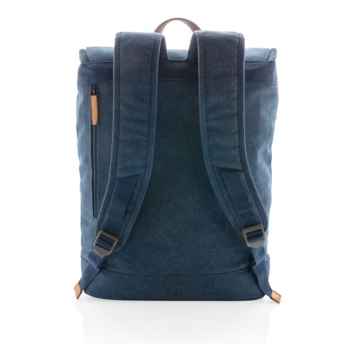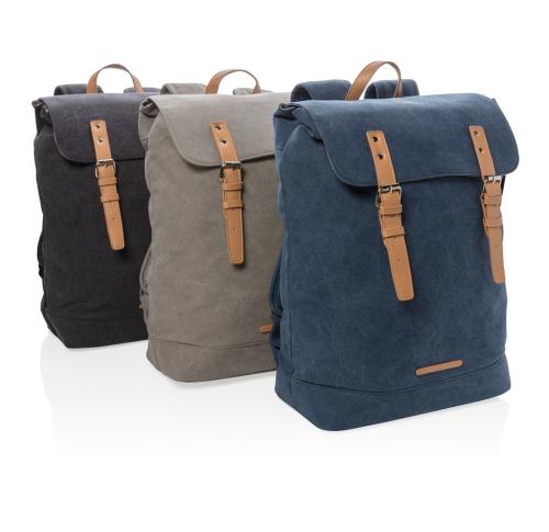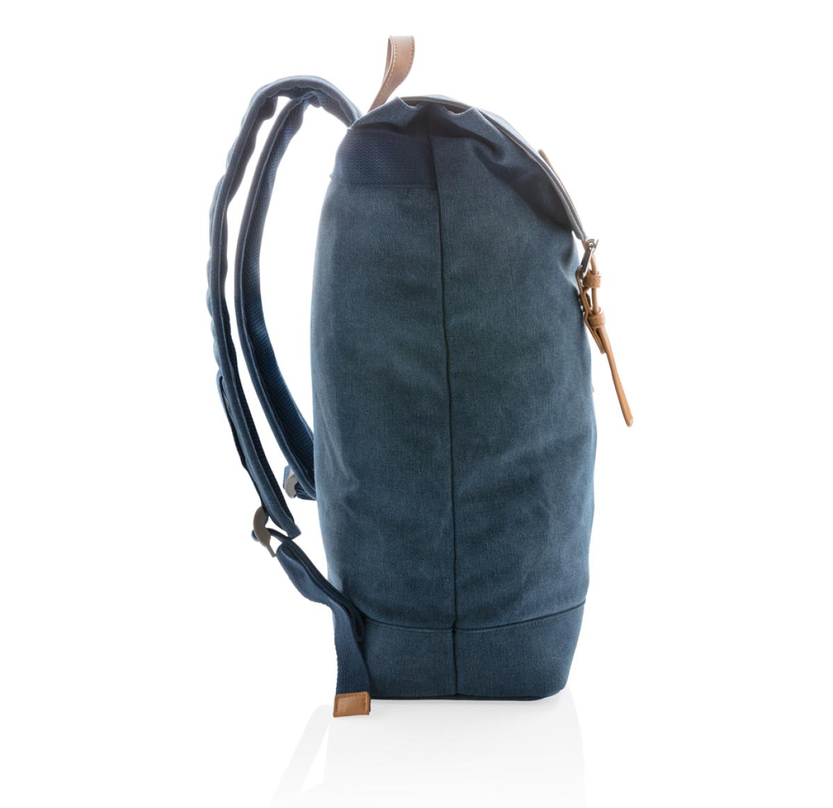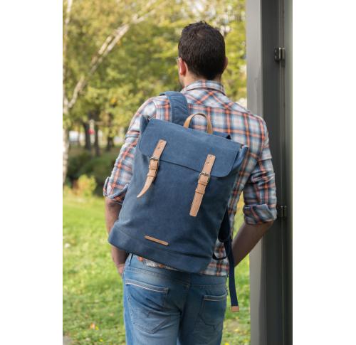Carry your essentials for casual travel in this durable canvas backpack. This model features a padded section for your laptop up to 15.6". The top flap closes with two imitation leather magnetic buckles. PVC free.