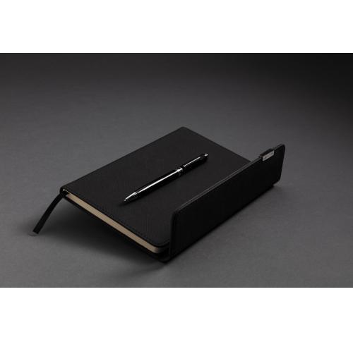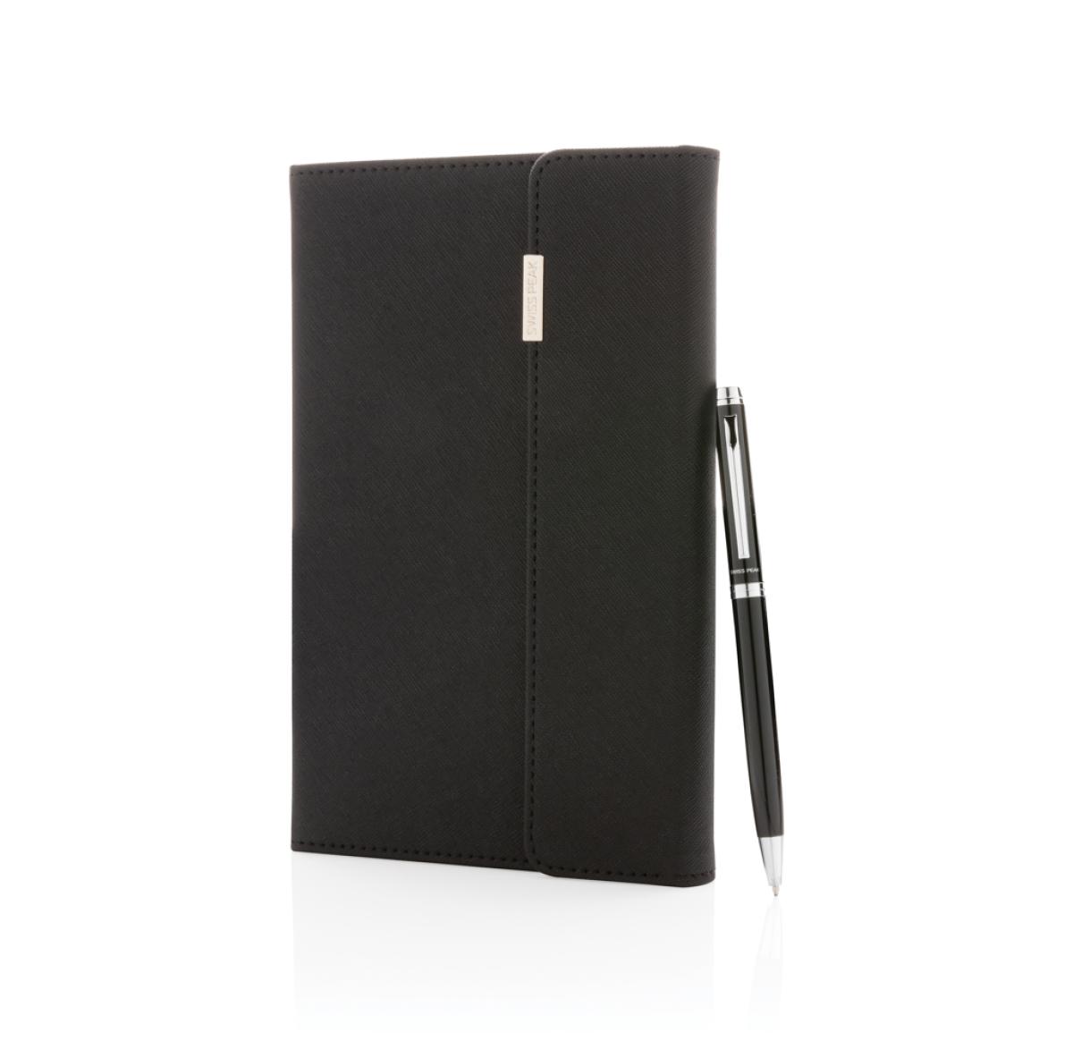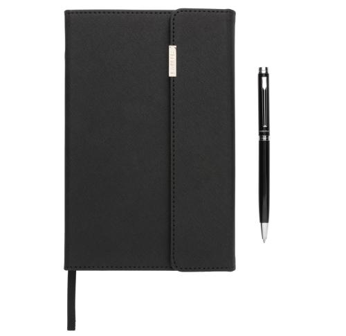 This notebook and pen set is a fantastic choice for those wanting to look sleek and sophisticated at the office. The notebook features a rich texture PU cover with metal logo, with 80 sheets/160 pages 80 grms lined cream coloured paper. The pen comes wit