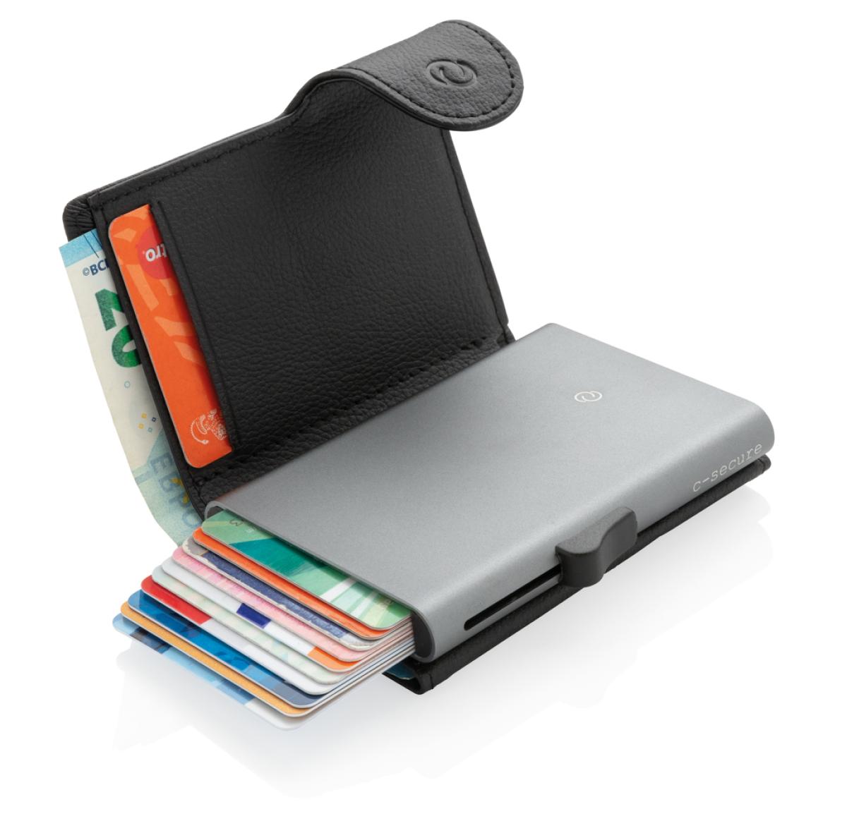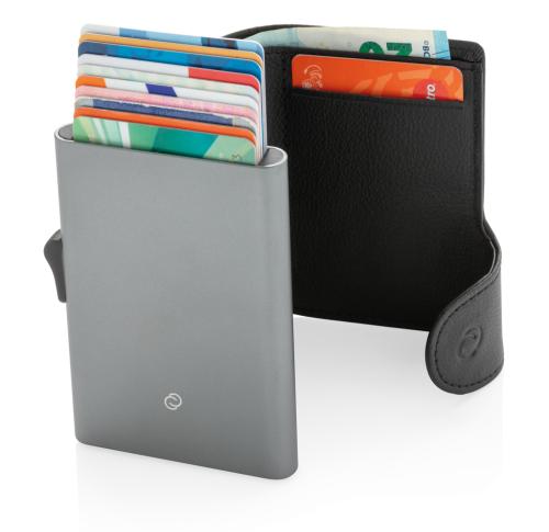 No more electronic pickpocketing, broken or bent cards! This is the ultimate wallet for the regular card user. The XL cardholder can hold up to 12 cards in comparison to our 1st generation 7 card holder C-Secure wallets. The side button slider will push