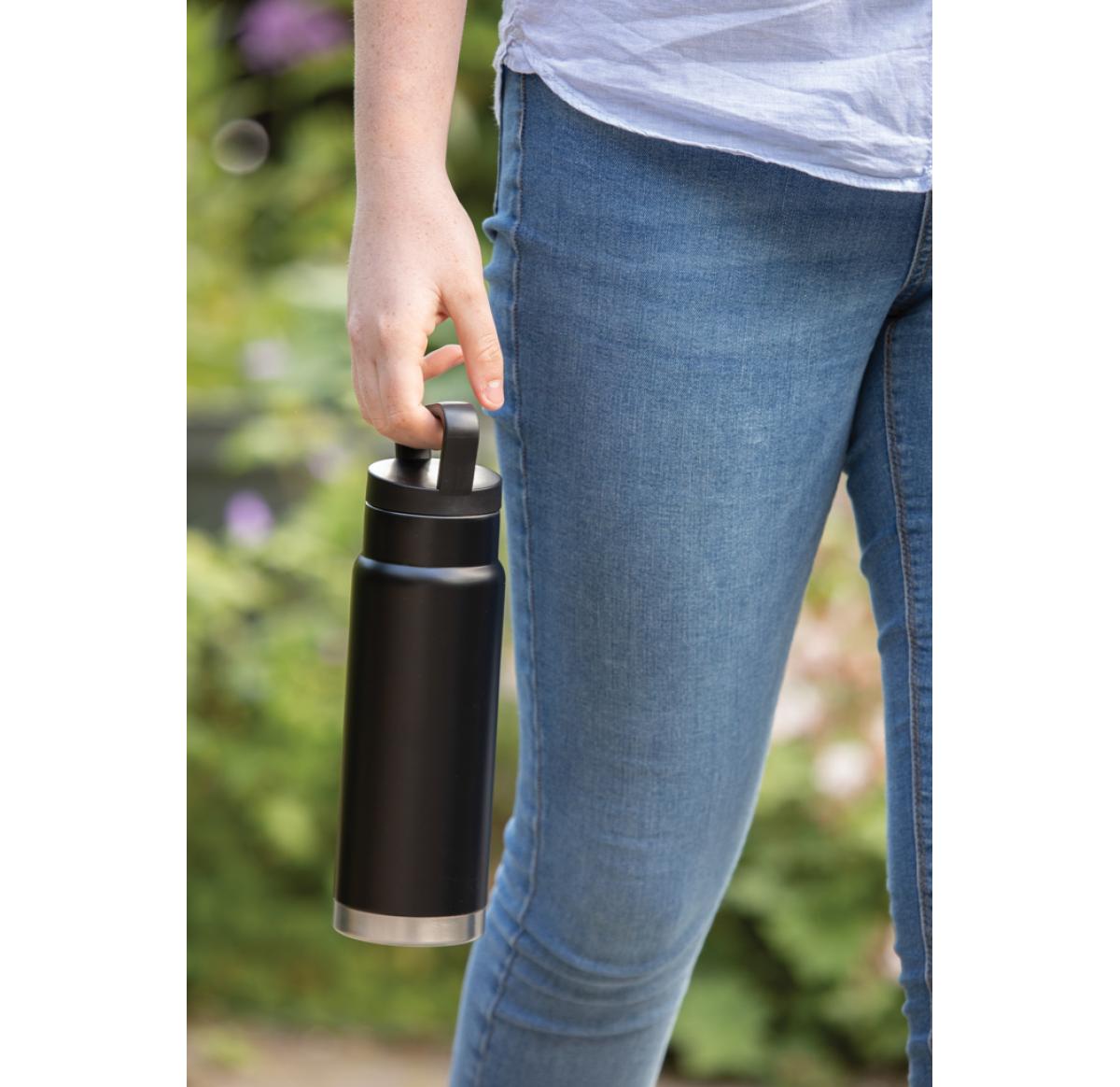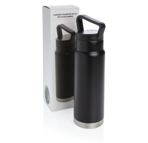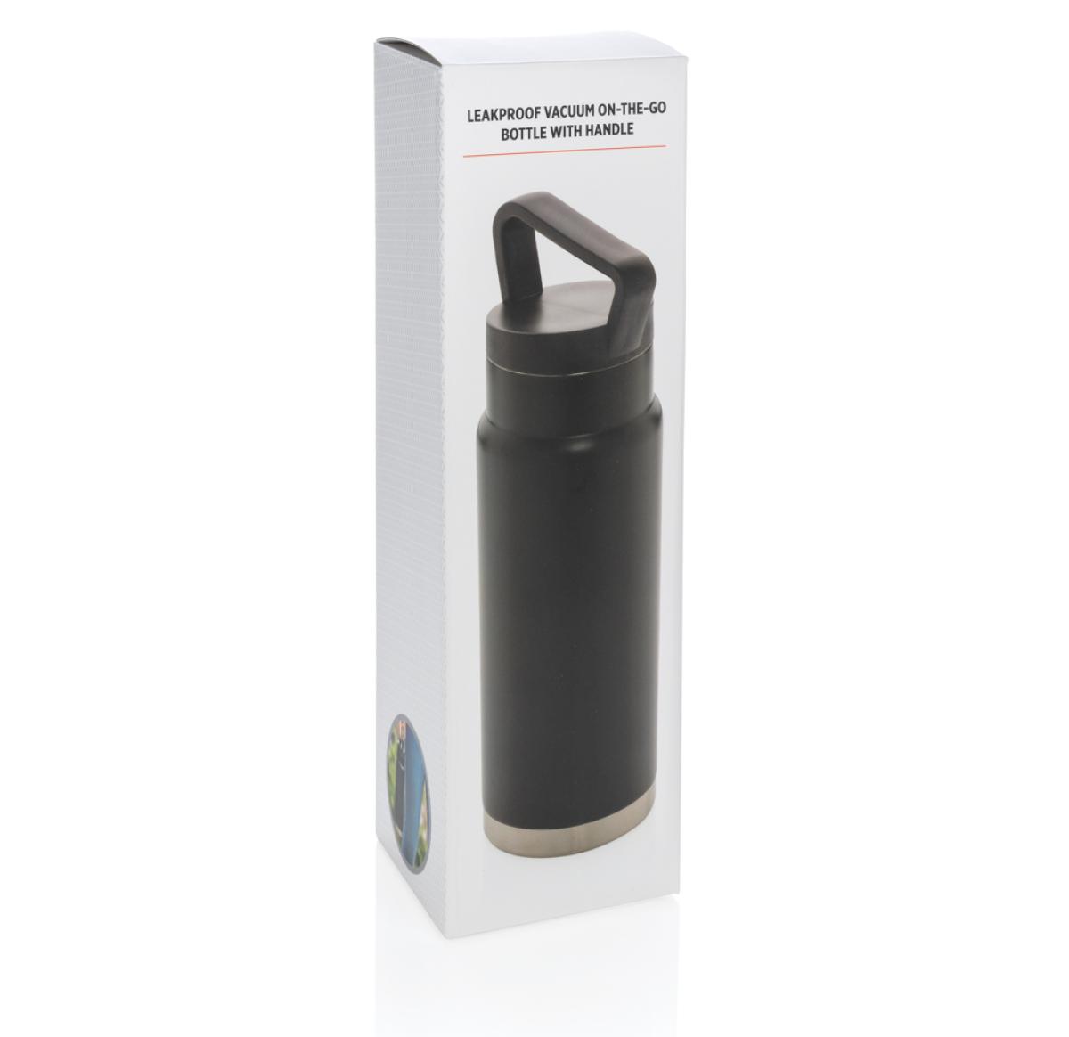 Promotional Leakproof Vacuum On-the-go Bottle With Handle - Black 650ml