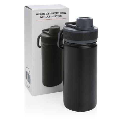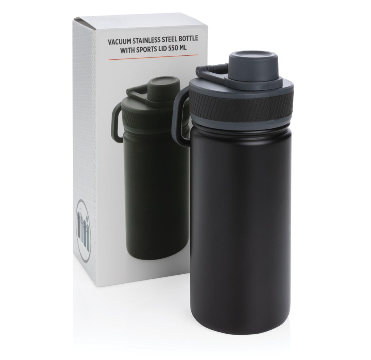 Promotional Vacuum Stainless Steel Metal Insulated Water Bottles With Sports Lid 550ml Black
