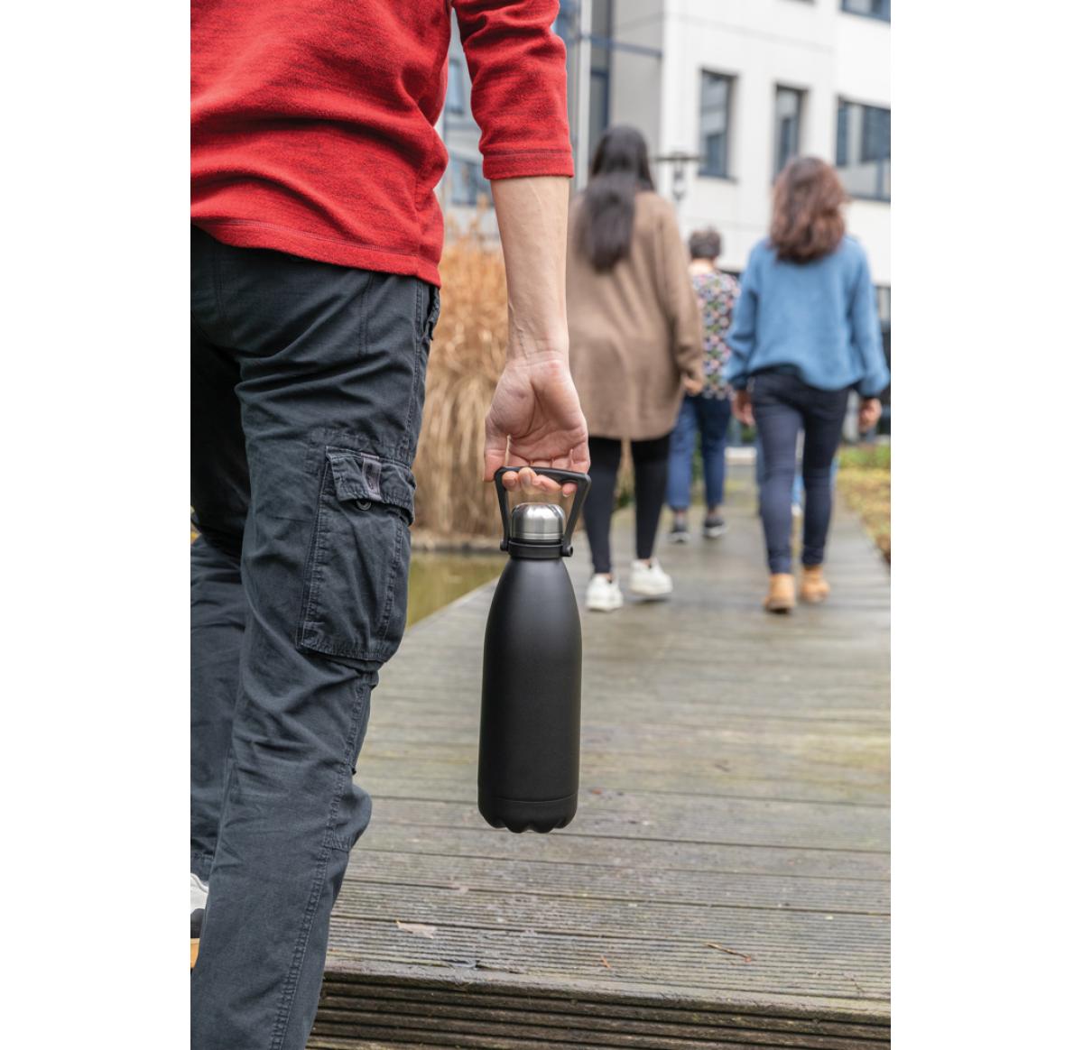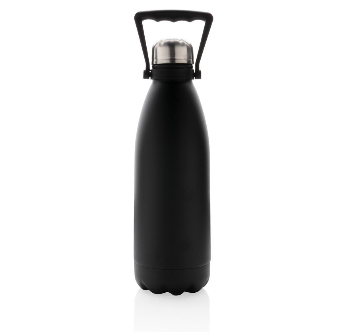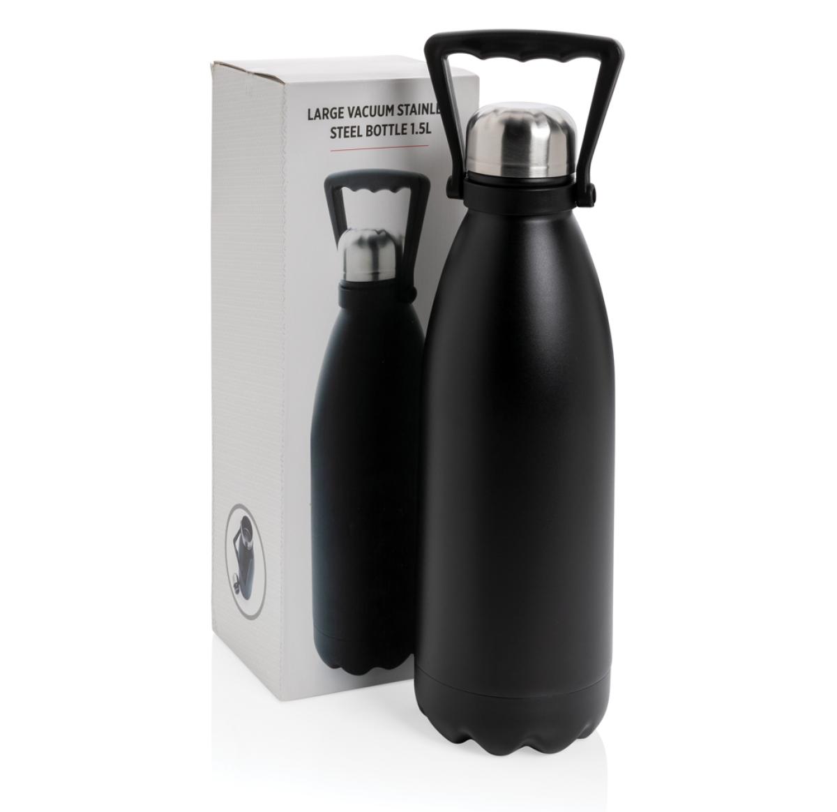 Large Vacuum Insulated Stainless Steel Water Bottles Printed Logo 1.5L Black
