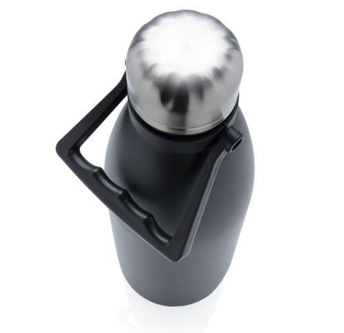Take your favorite drinks everywhere in this large double wall stainless steel bottle. With its large capacity of 1.5 litre, you are assured to have plenty to drink and the bottle keeps your beverages hot for 5 hours or cold for 15 hours. The bottle has a