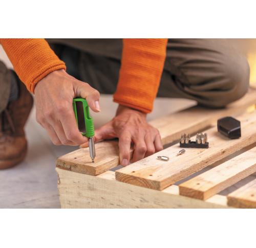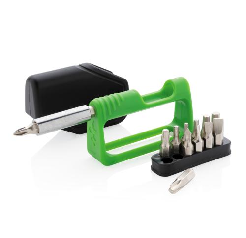 Easy to carry bit set with 12 bits and one 2” extender made from stainless steel. ABS casing with integrated holder for the bits. Bits included: 3 x TORX driver (10,15,25) 3 x Hex driver (3mm, 4mm, 5mm) , 3 x Philips drivers ( 1.8mm, #0 #2) 3 x flat drive