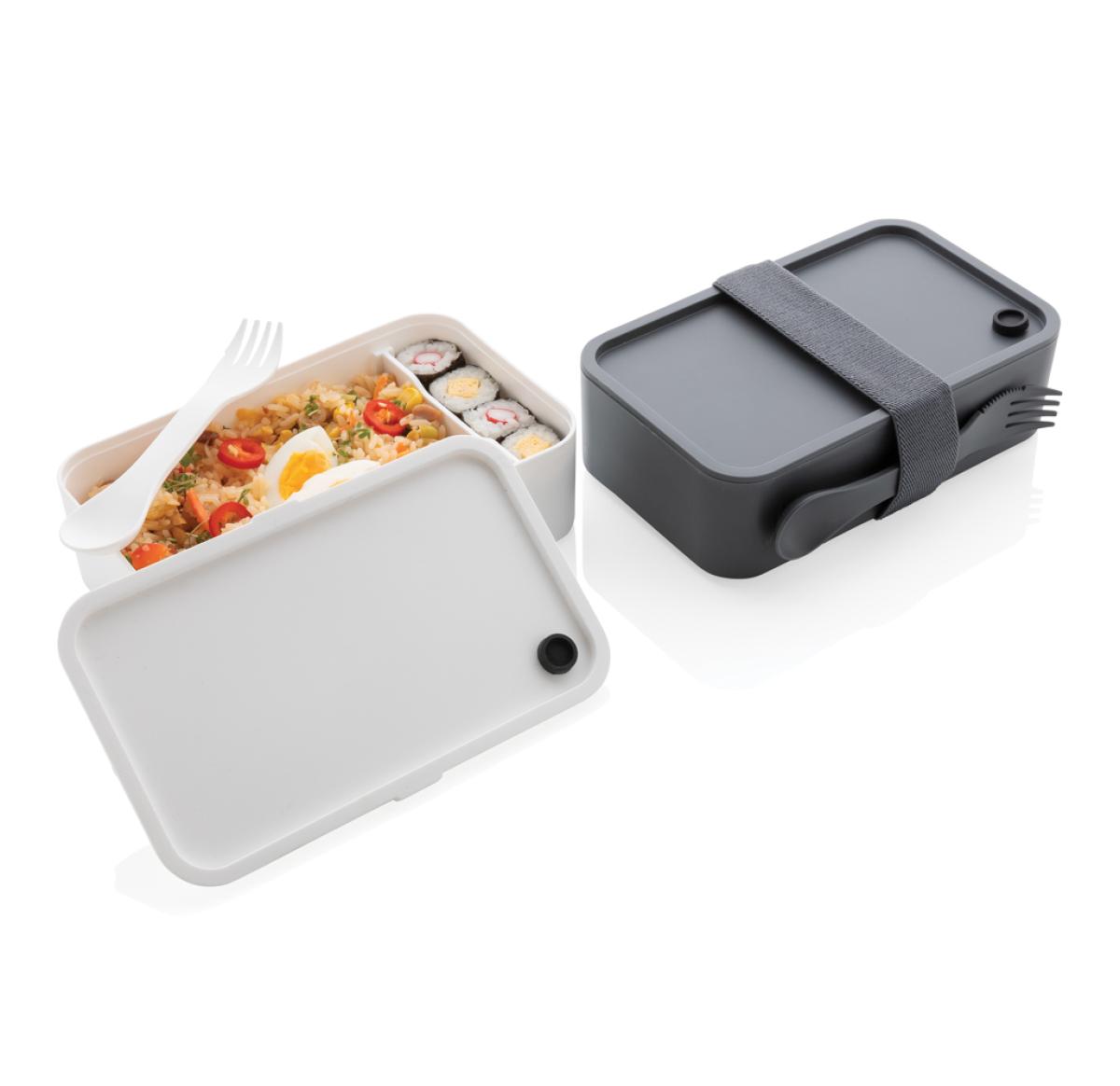 This stylish and sturdy lunchbox fits perfectly with a healthy lifestyle. It is big enough for carrying sandwiches and delicious salads. Made from PP. Including a handy spork and elastic strap. Capacity 1.2 litre.