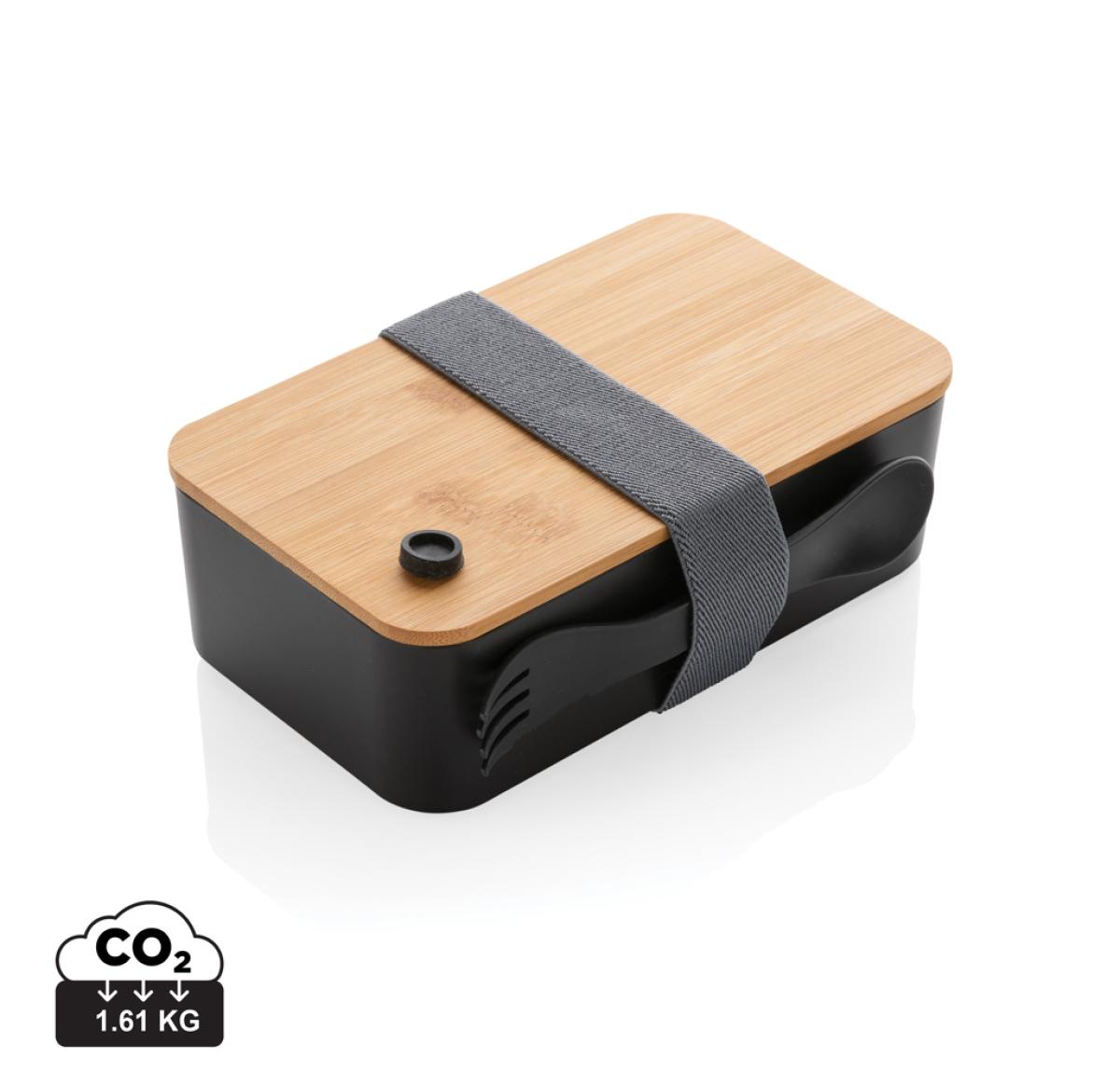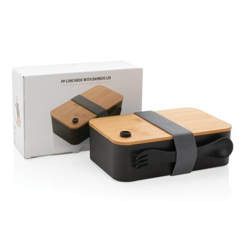 Custom Branded PP Lunch Boxes With Bamboo Lid & Spork Dishwasher Safe