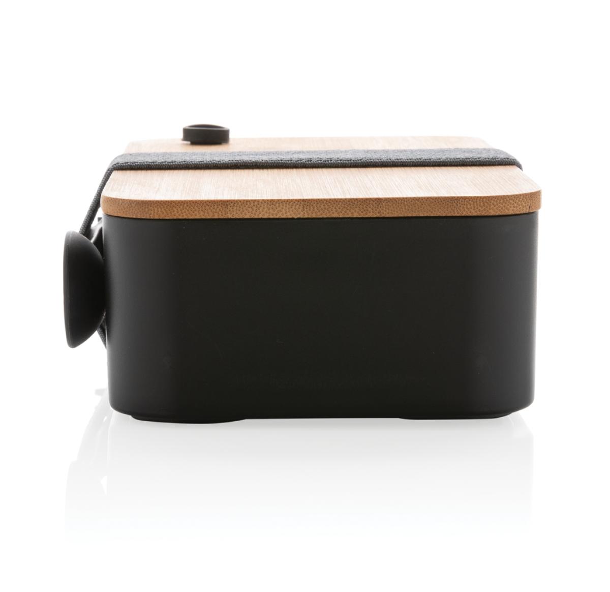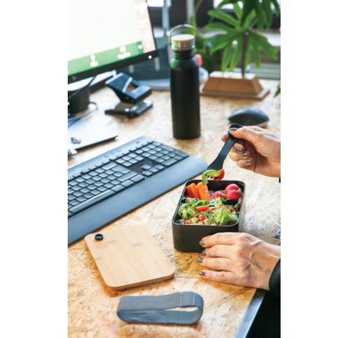 Packing lunches is easier than ever with this PP lunch box and bamboo lid. Includes a handy elastic strap and spork. The PP box is dishwasher and microwave safe but the bamboo lid is not. Capacity 1.4 litre.