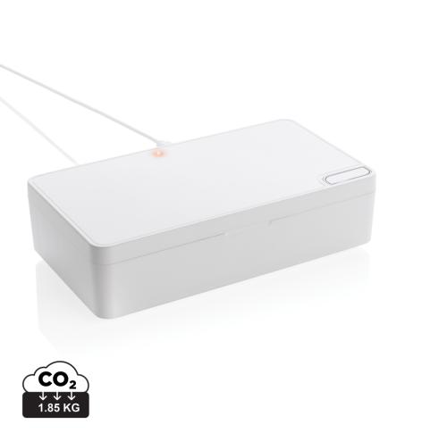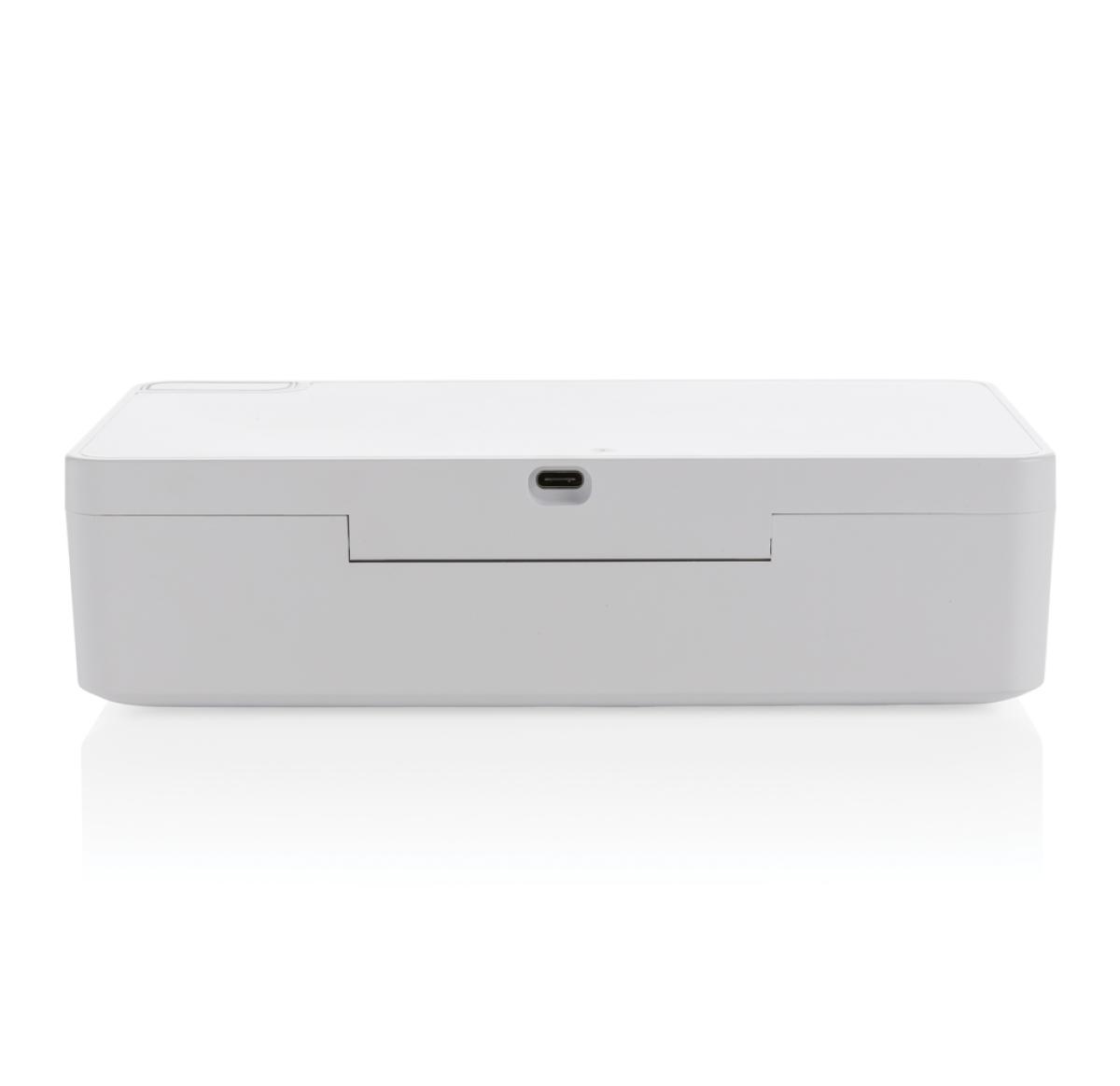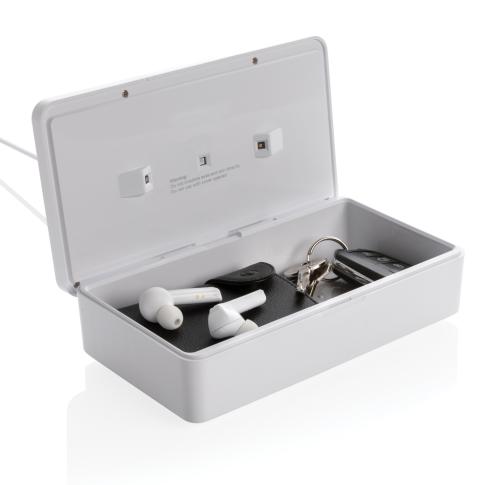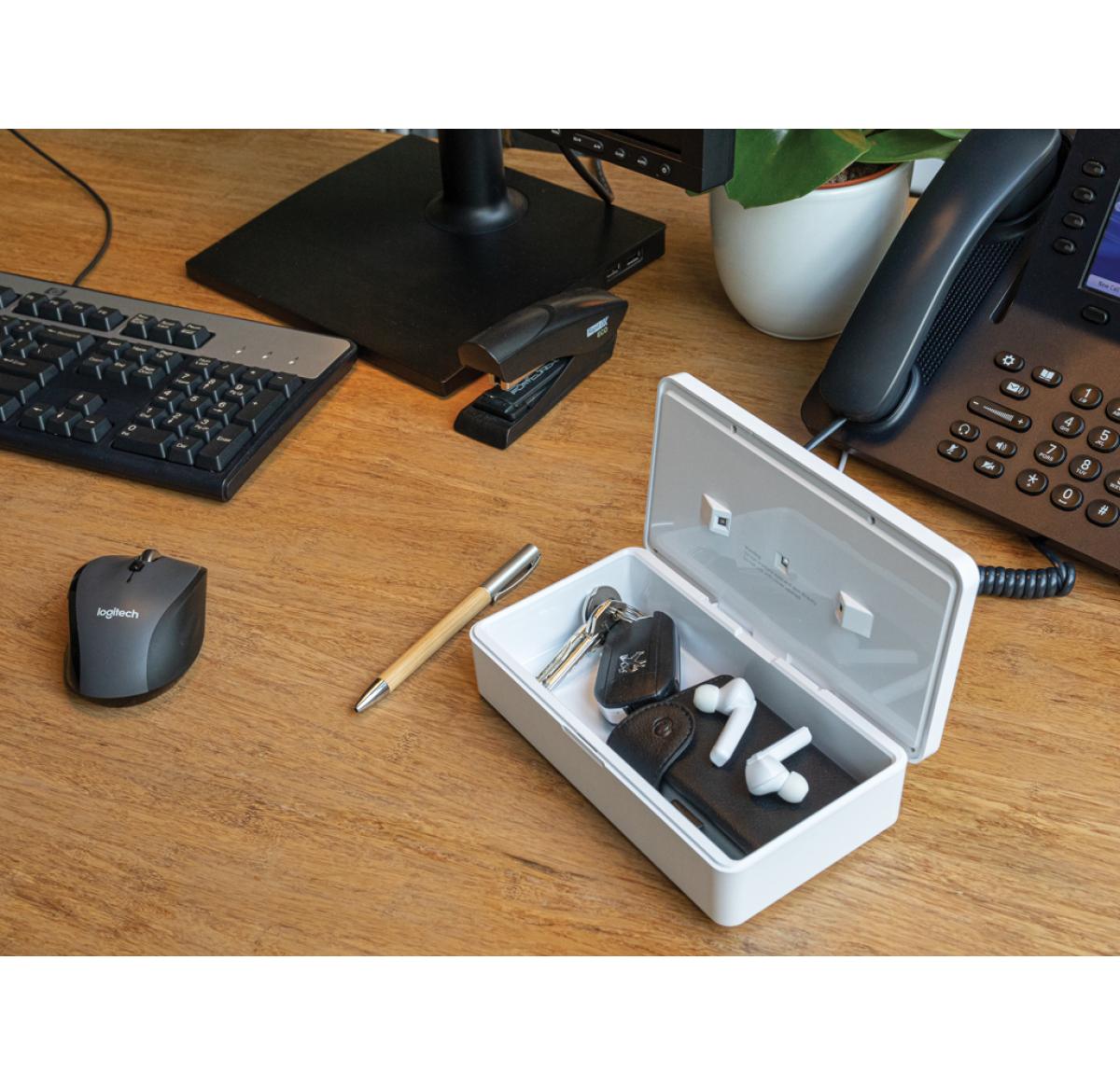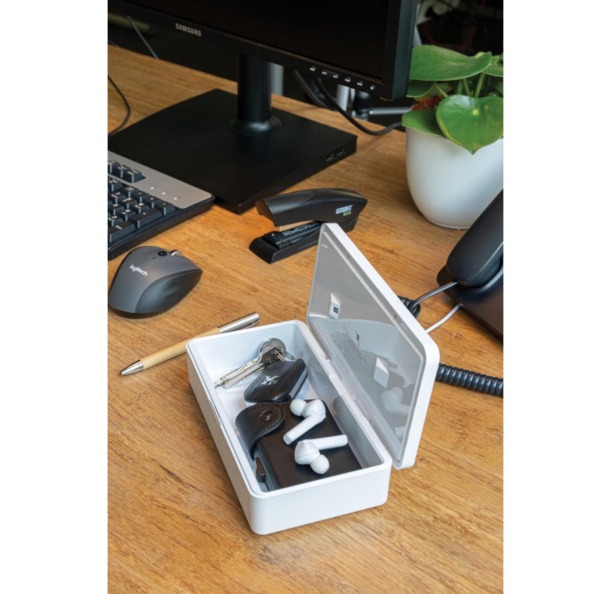 Multifunction UV-C steriliser that kills up to 99,9% of the bacteria placed inside the device. Simply place objects like earbuds, jewellery, watches and facemask inside the steriliser to sterilise them using UV-C technology. You can choose to do a quick c
