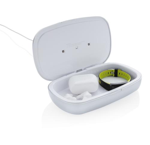 Multifunction UV-C steriliser that kills up to 99,9% of the bacteria placed inside the device. Simply place objects like earbuds, jewellery, watches and facemask inside the steriliser to sterilise them using UV-C technology. You can choose to do a quick c