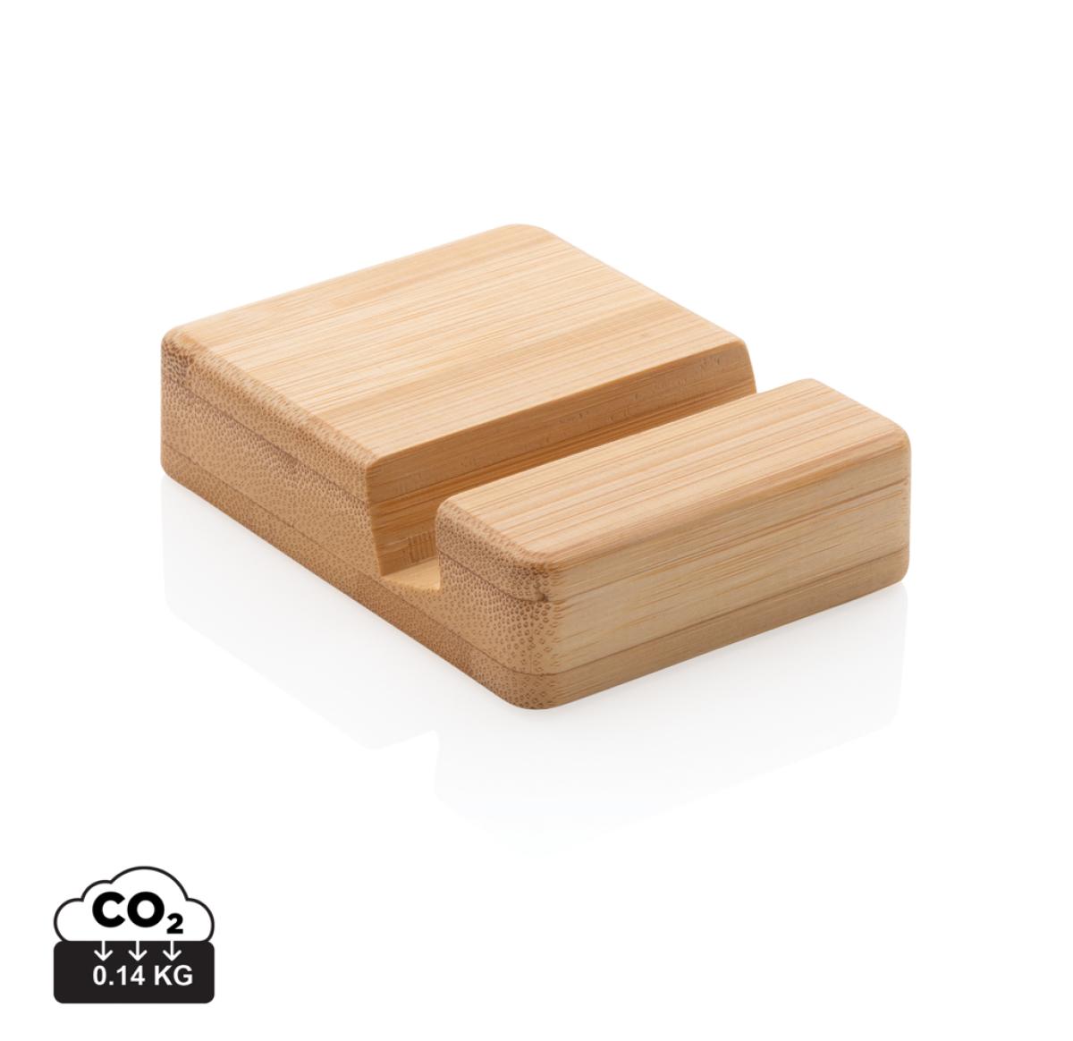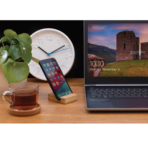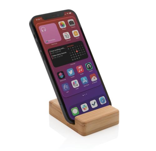 Phone stand made from completely natural bamboo. Perfect on your desk or when you are working from home.