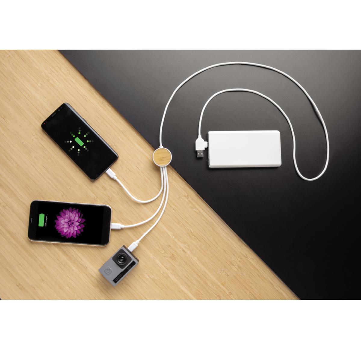 Multi cable with 5 different connectors: USB C in, USB A in, type C out, IOS out and micro USB out. This allows you to use the cable also with type C output devices that are included in the newer generation of phones and macbook computers. The cable also