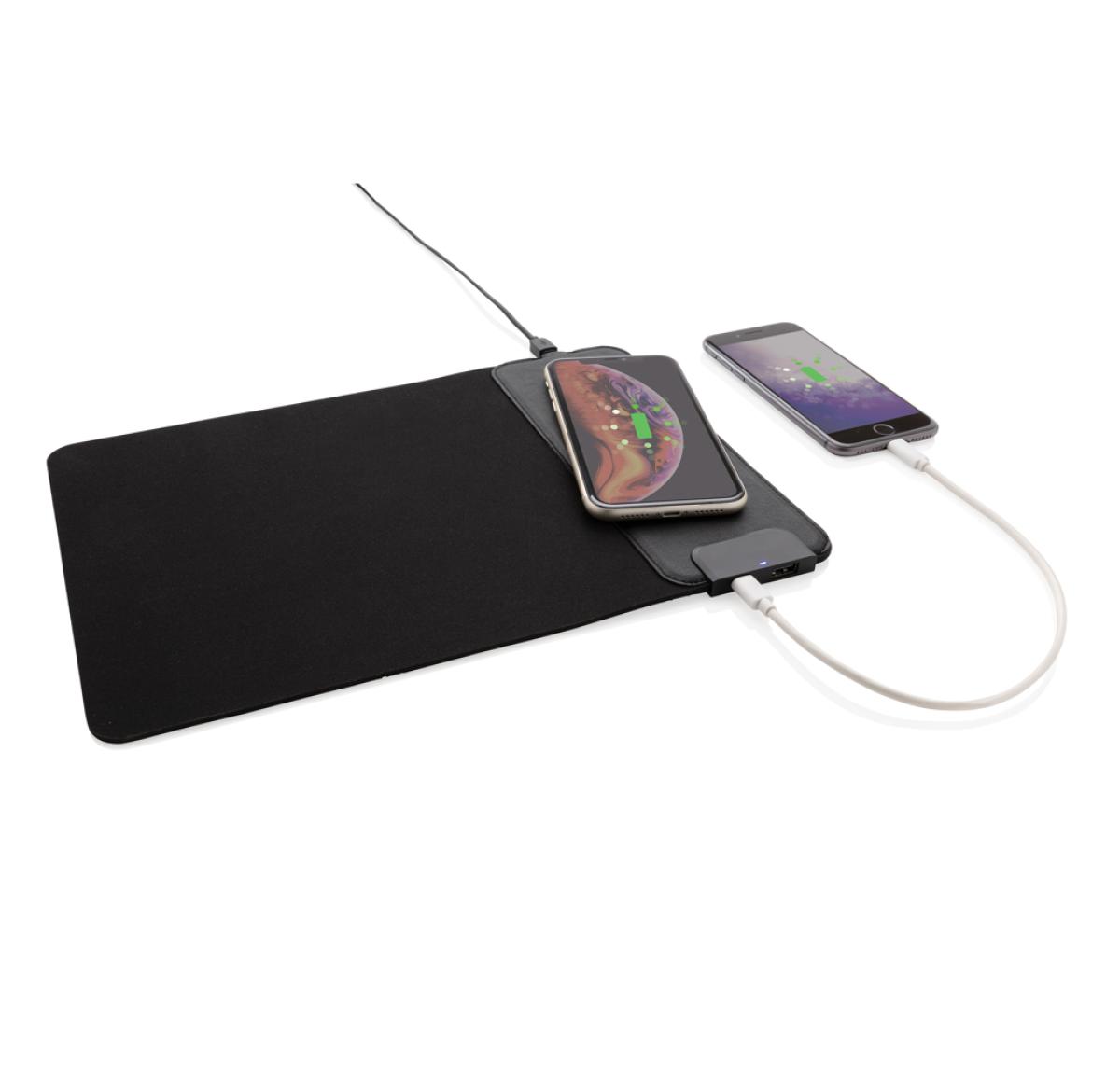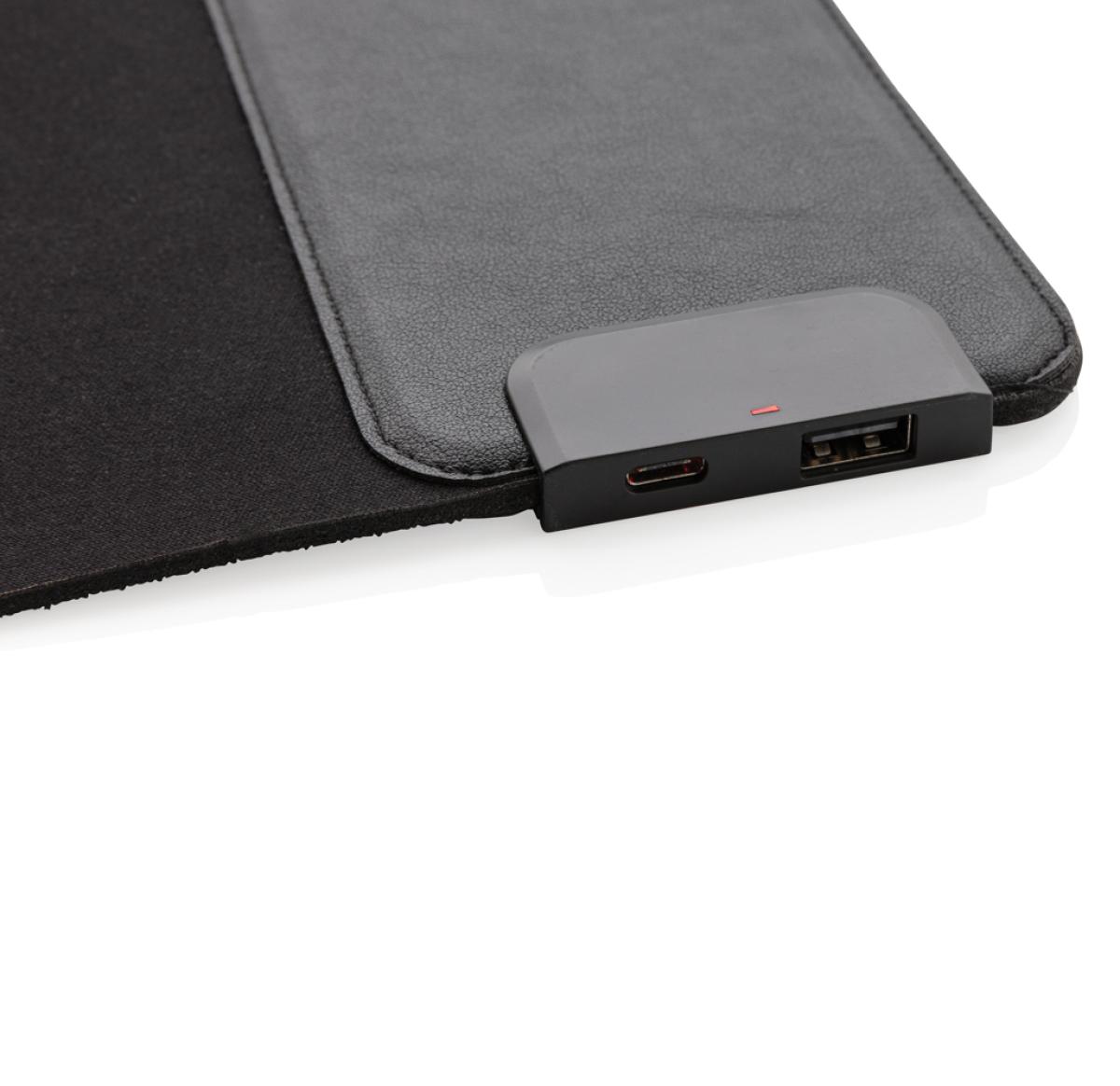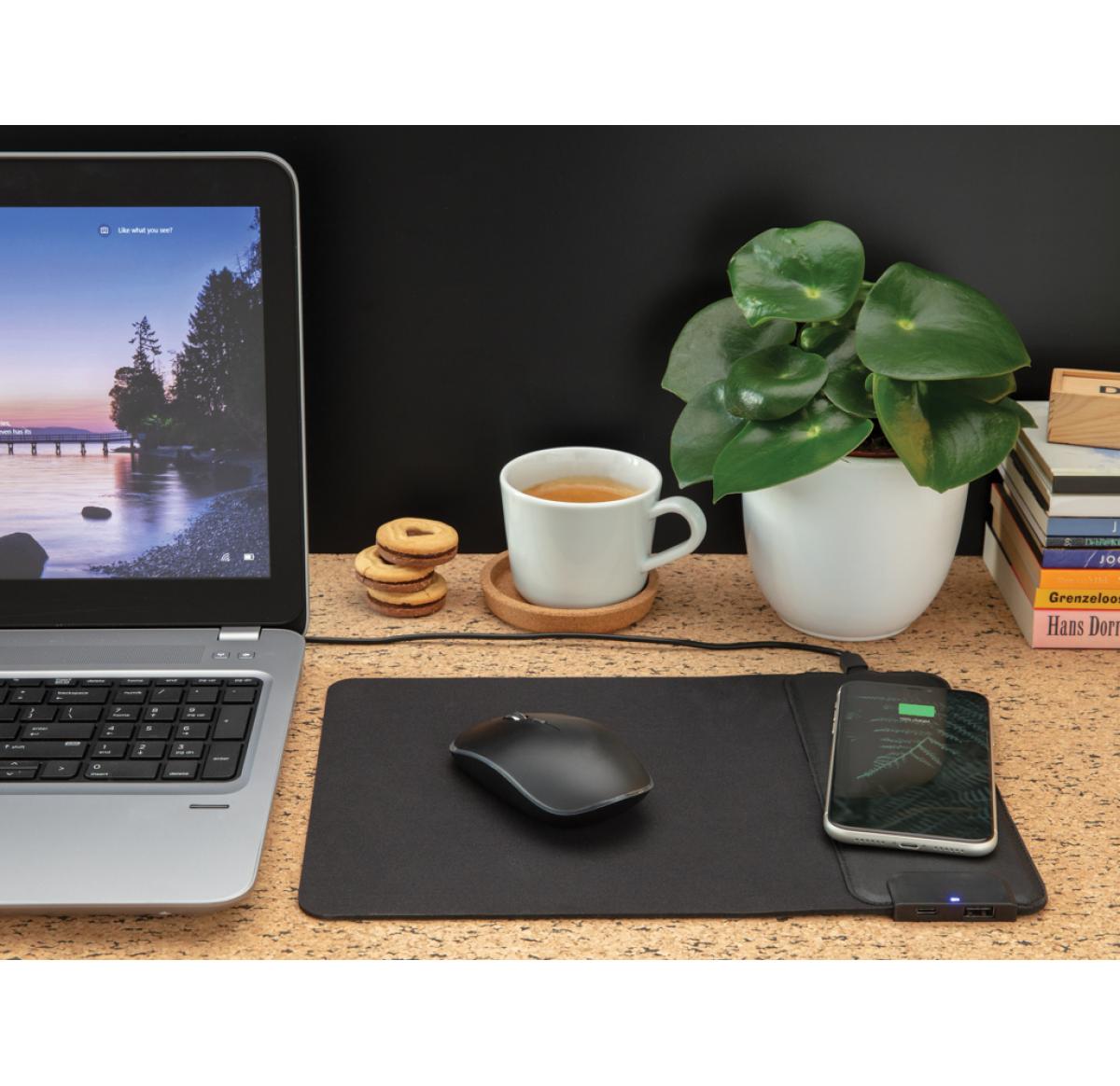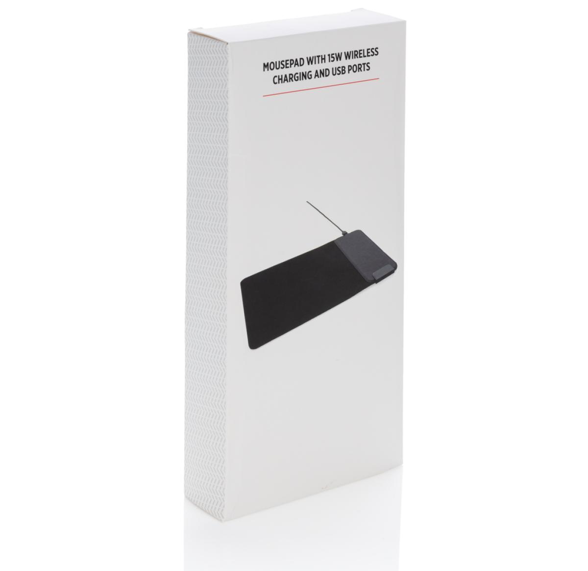 Fast charging mousepad that allows super-fast charging via the 15W wireless charger on the side of the mousepad. It also has one USB output for charging via cable and one type C output. Input 5V/3A 9V/2A. USB output 5V/1.5A, type C output 5V/1.5A. Wireles