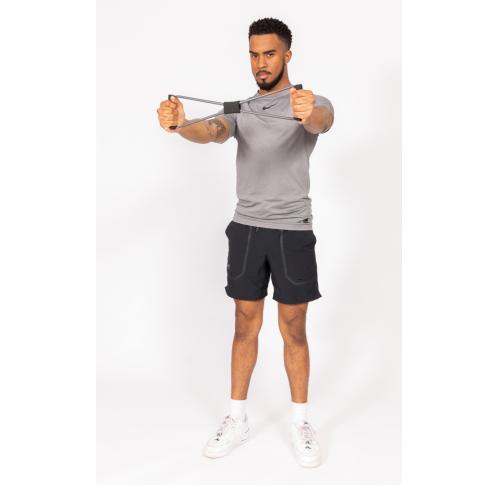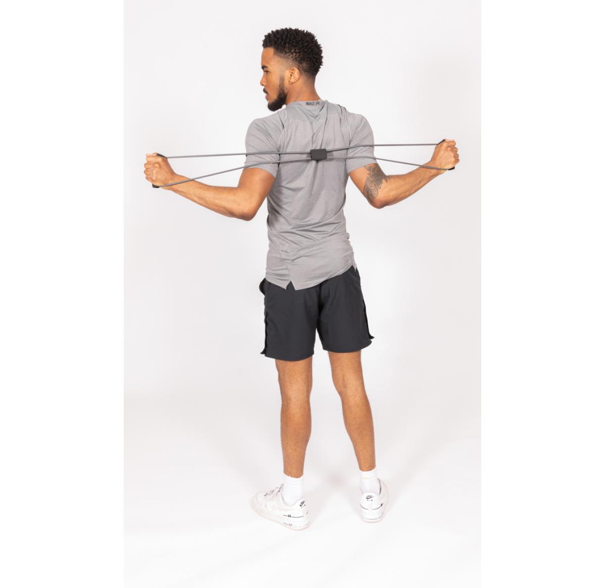 This figure 8 shape exercise band is a great fitness tool. Strengthen your muscles with this compact and convenient exercise band! Easy to carry and toss into any bag, you can take it anywhere to stay in shape. Including a manual with exercises so you can