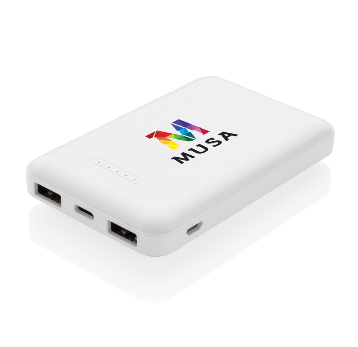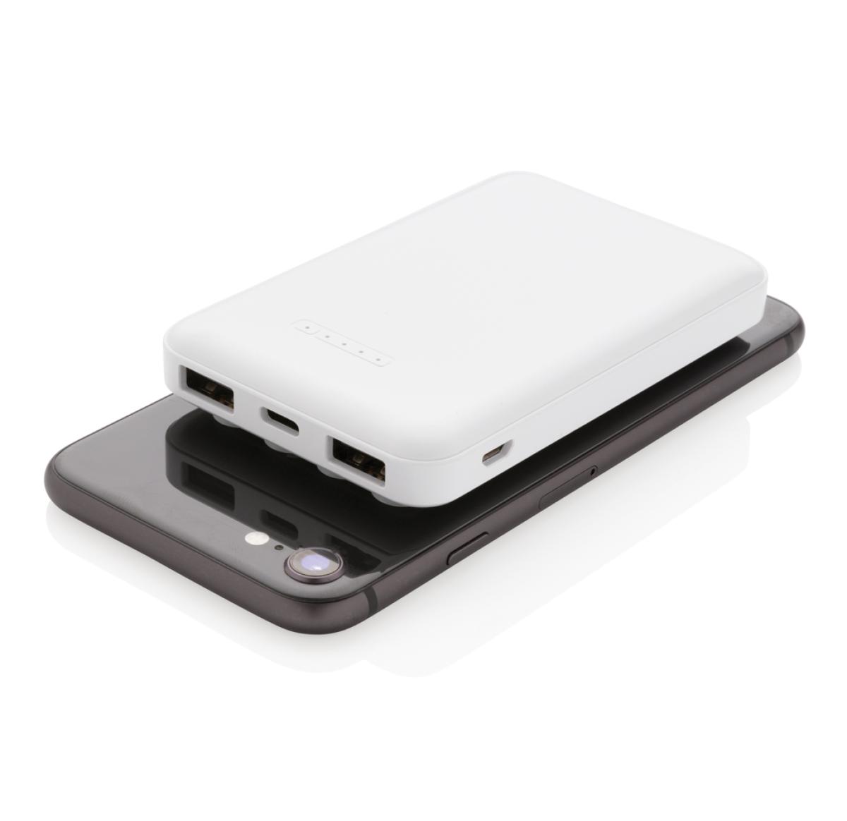 Ultra-compact 5000 mAh powerbank with 5W wireless charger made out of lightweight ABS that fits into your pocket so perfectly that you can take it anywhere you go. When fully charged it will provide you with enough energy to re-charge your mobile phone up
