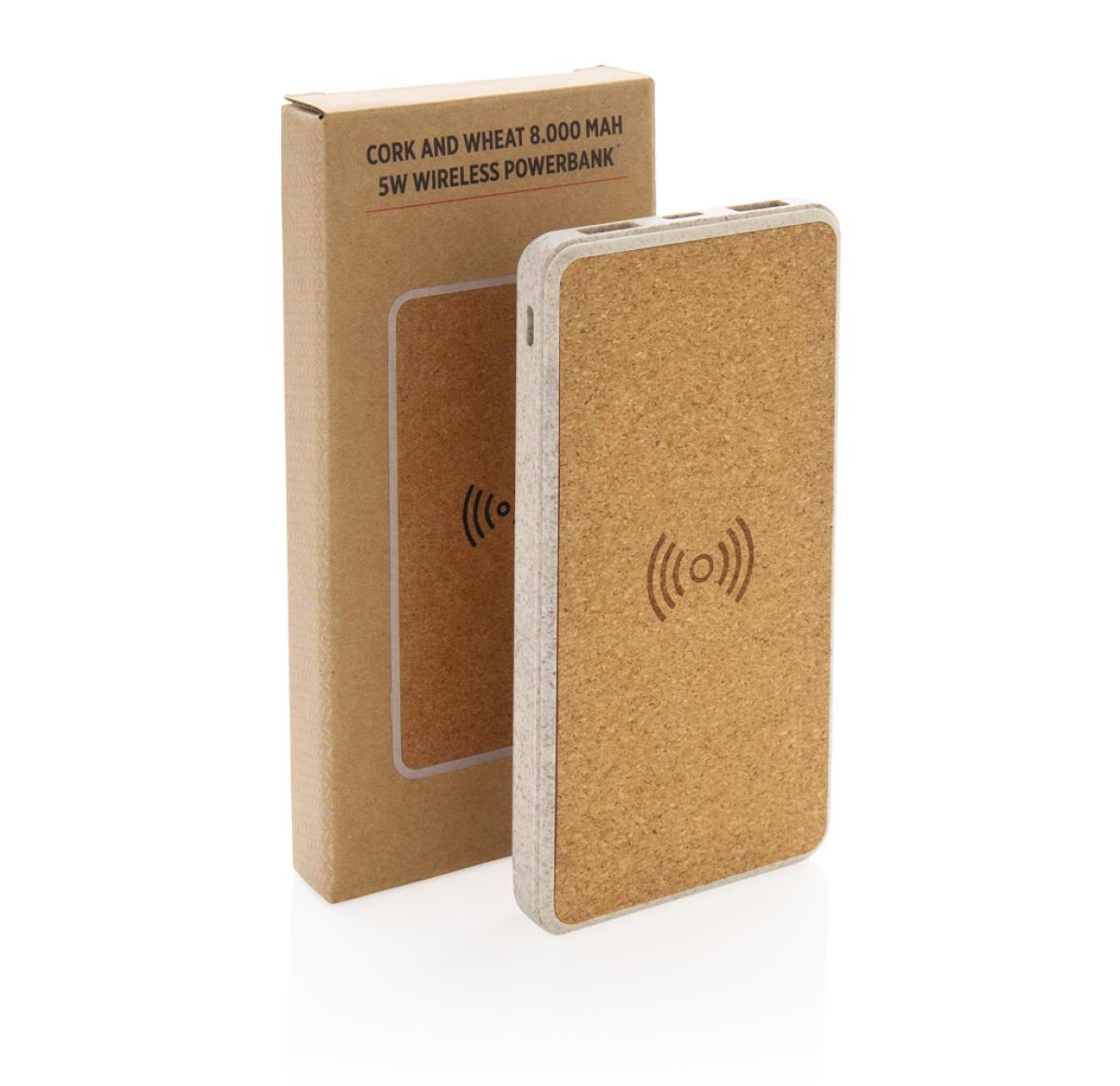 Printed Logo Cork And Wheat Straw 8.000 MAh 5W Wireless Powerbanks