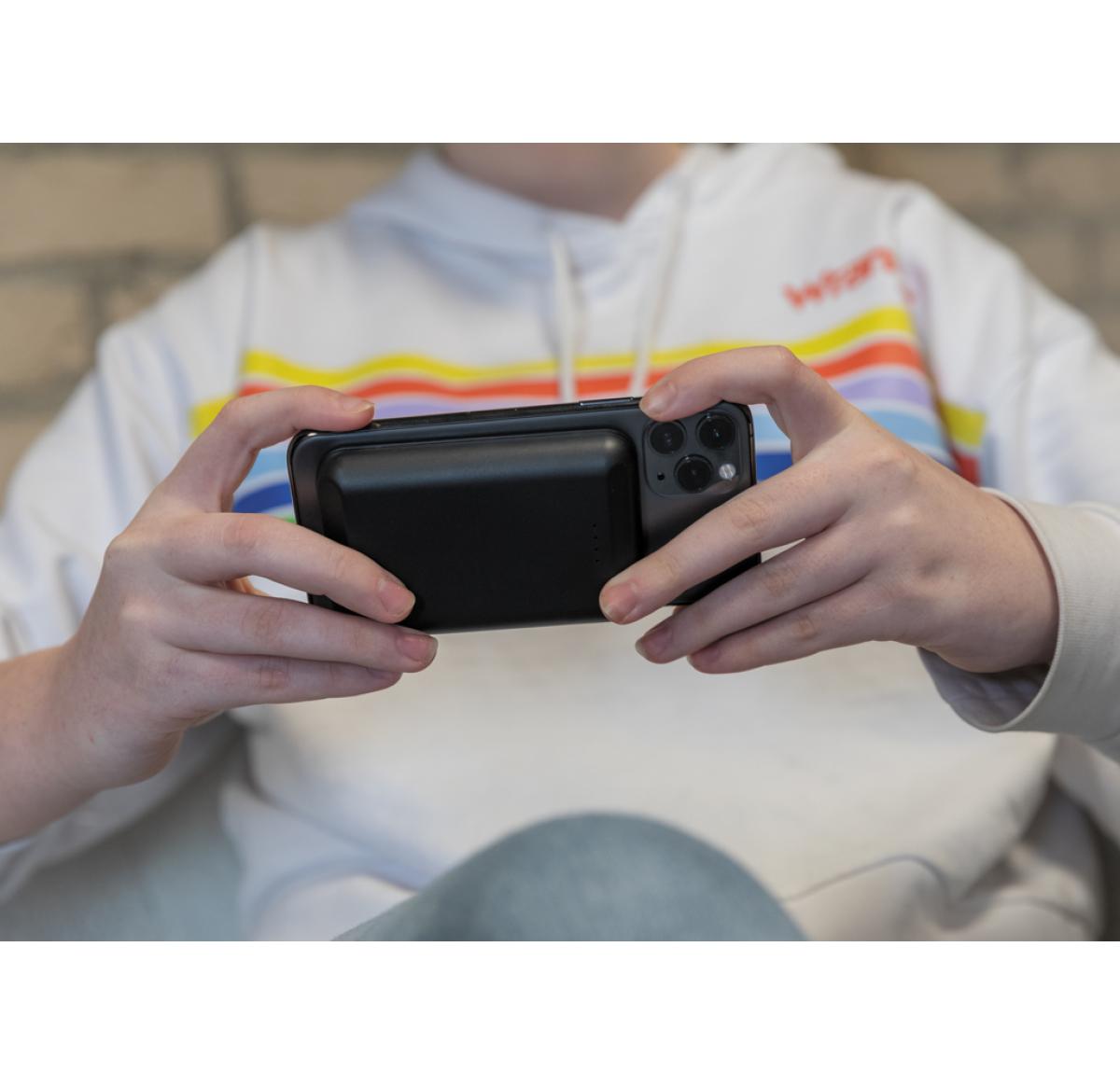 Snap on this magnetic wireless charging powerbank to the back of your iPhone 12 to charge your device. The magnets are perfectly aligned to always ensure the right charging position on your phone. The 5W wireless charger is compatible with all QI devices