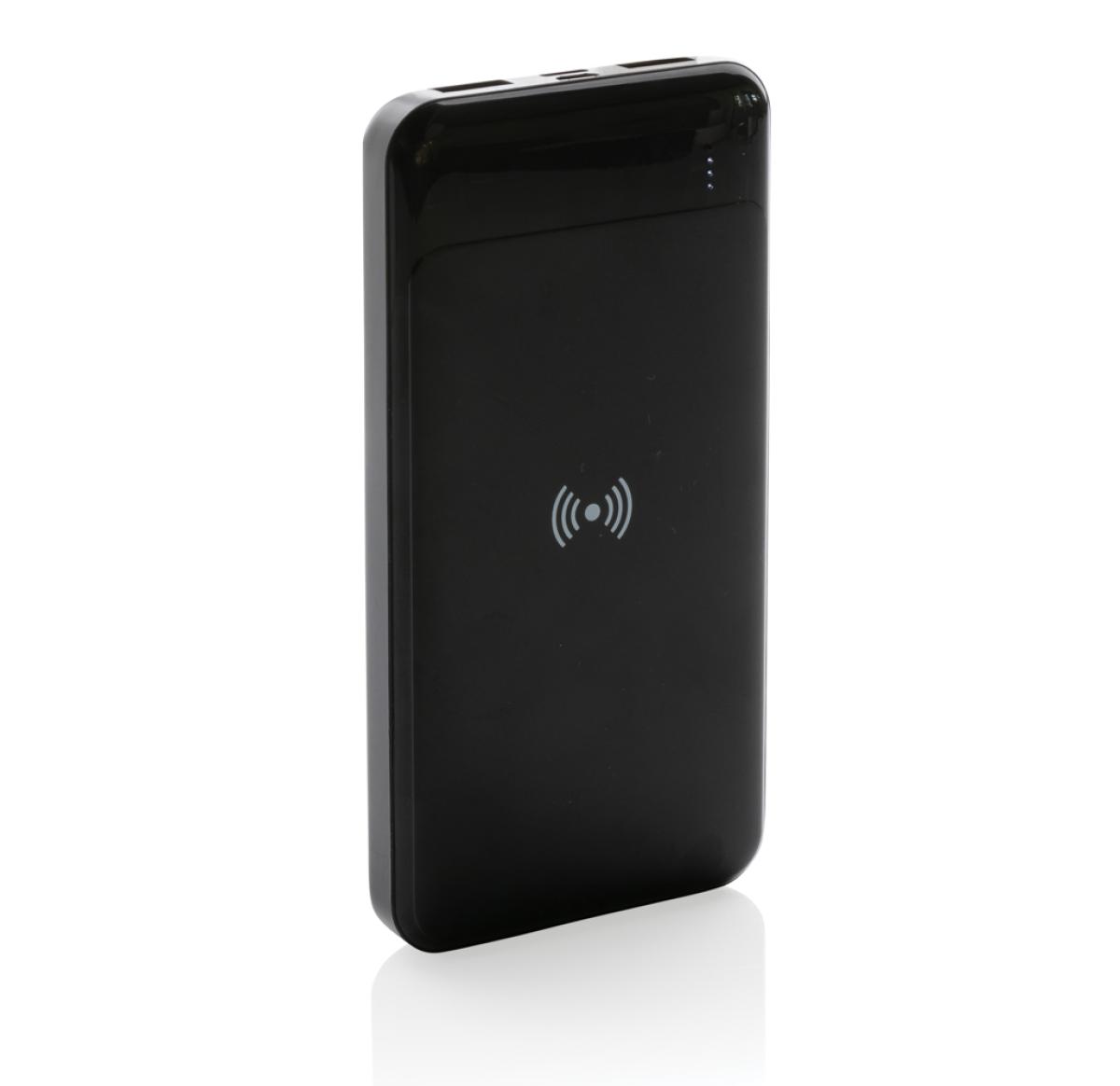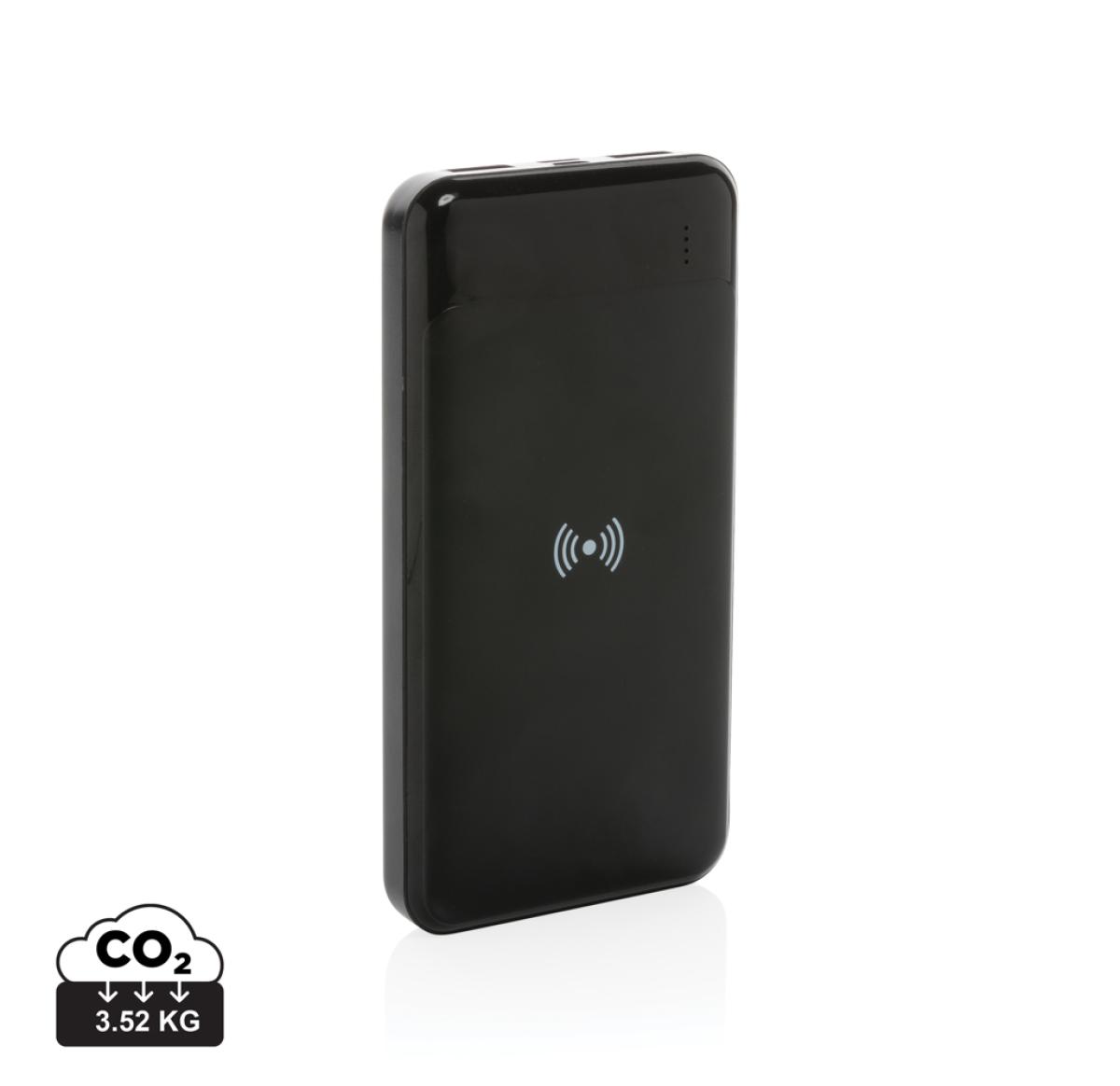 8.000 mAh powerbank with 5W wireless charger where the case is made out of RCS certified recycled ABS plastic. RCS (Recycled Claim Standard) is a standard to verify the recycled content of a product throughout the whole supply chain. Total recycled conten