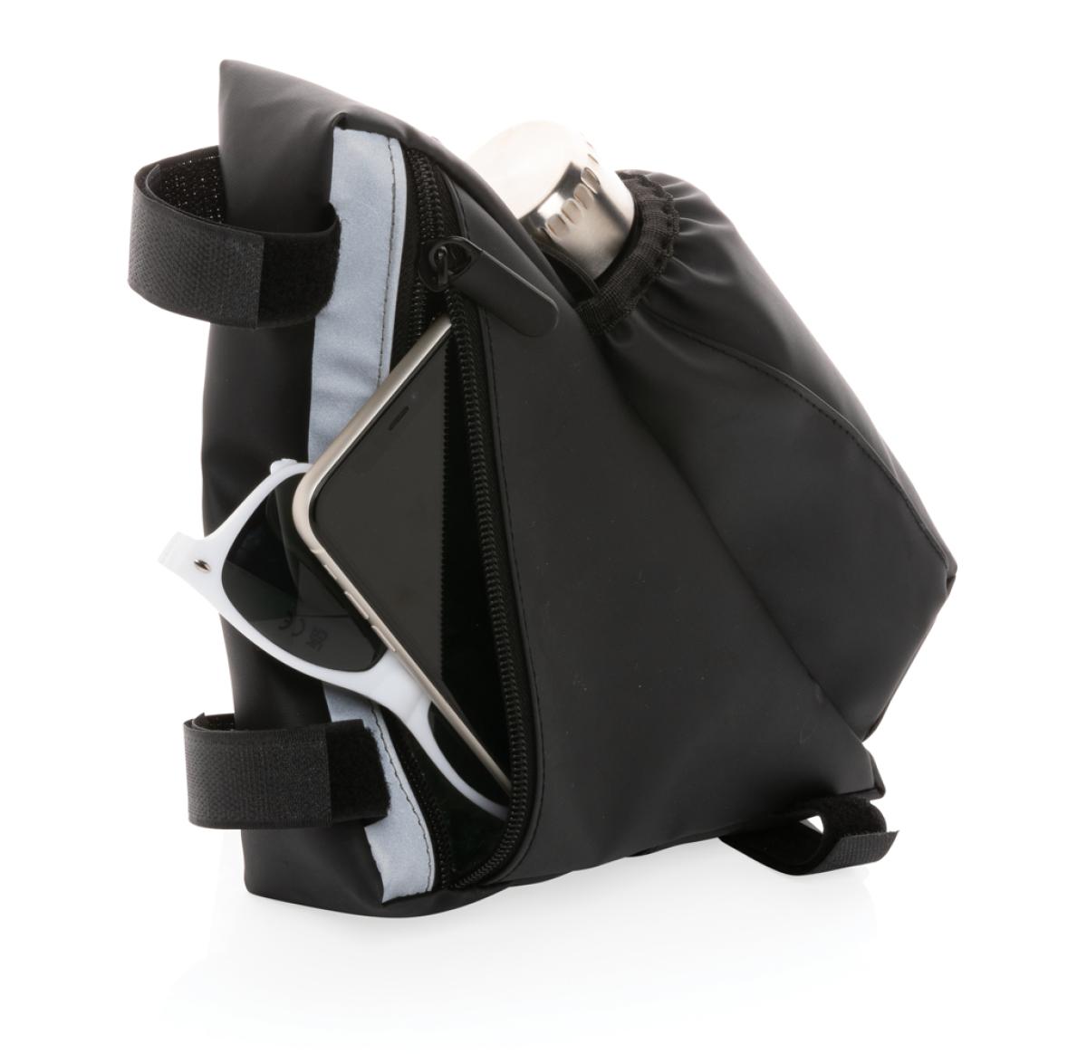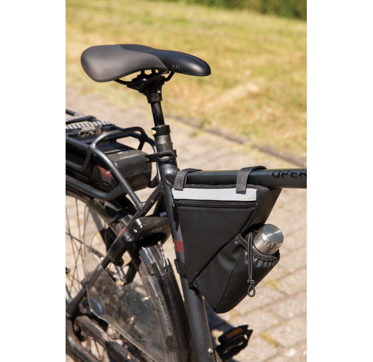This PU high visibility bike frame bag with bottle holder is the ideal accessory to take with you on a relaxed bike ride. No need to bring a bag, just pop your essentials into the bike frame bag, your bottle of water and off you go! Easy to fasten thanks