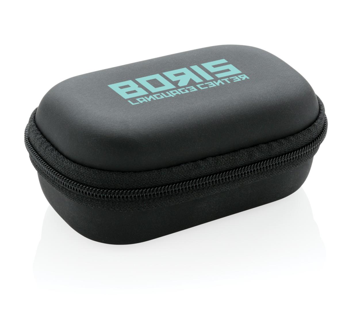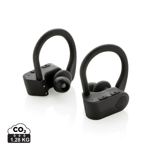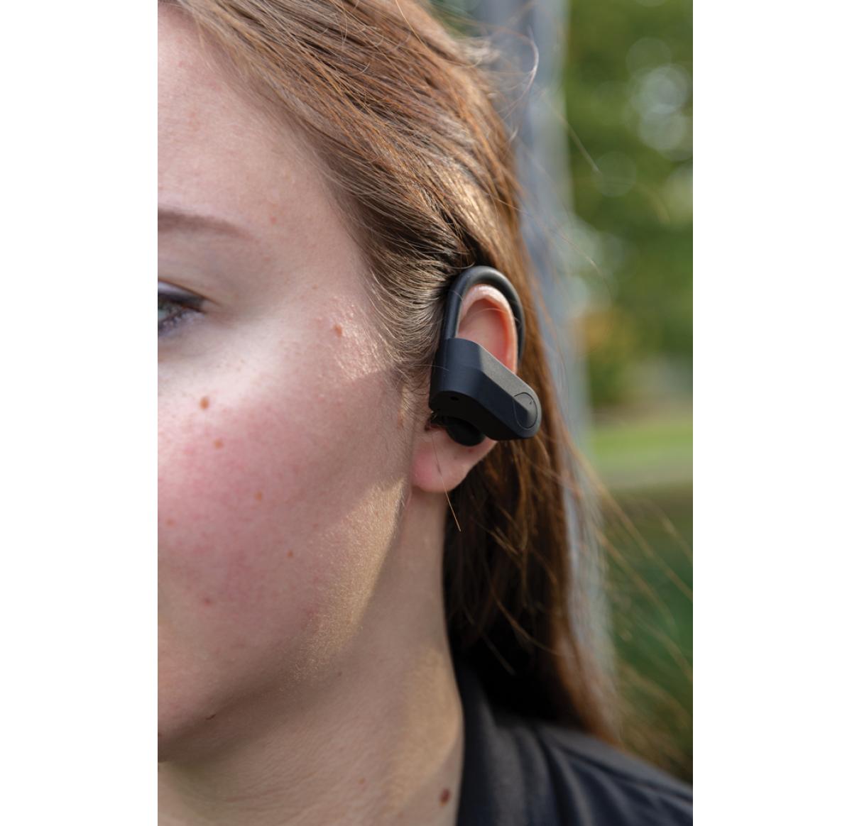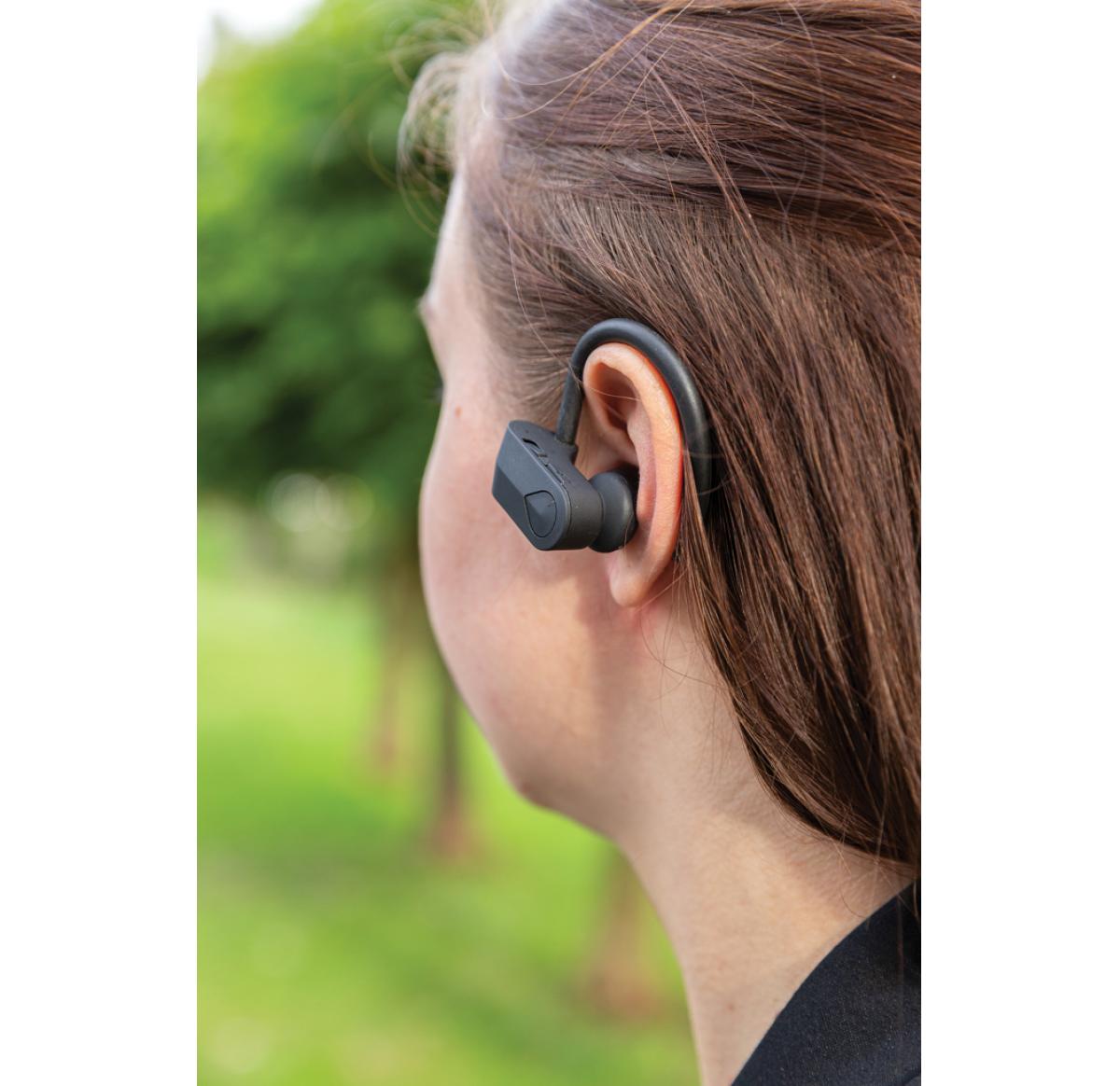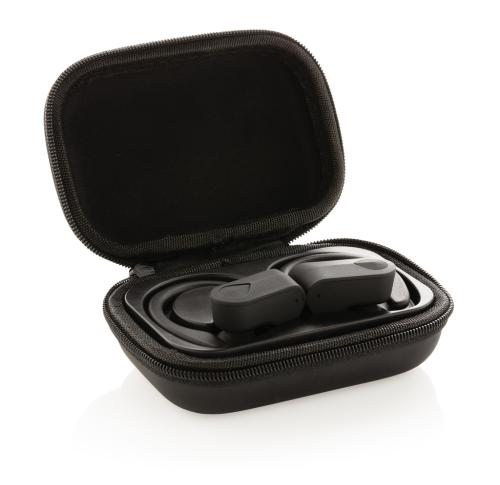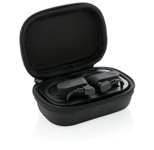 Push yourself to the next level when you go on a workout with these lightweight true wireless earbuds in PU soft shell charging case. The ABS material earbuds fit perfectly around your ear to ensure a perfect fit during your workout. The earbuds have a 50