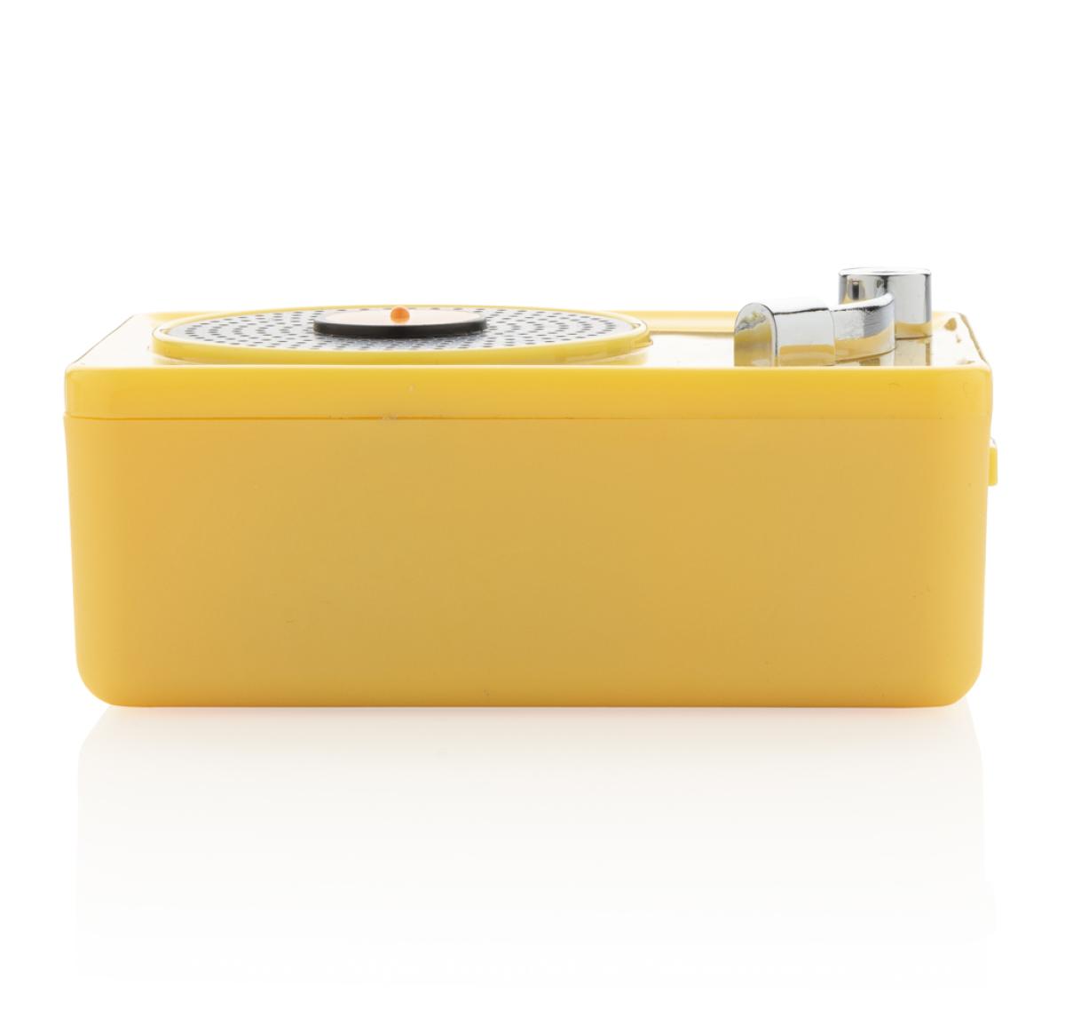 Trendy 3W wireless speaker with vintage look and feel in fashionable colours. Clear sound quality with BT 5.0 for smooth connection to the wireless speaker, up to 10 metres operating distance. The 350 mah battery allows a playing time of up to 3 hours in