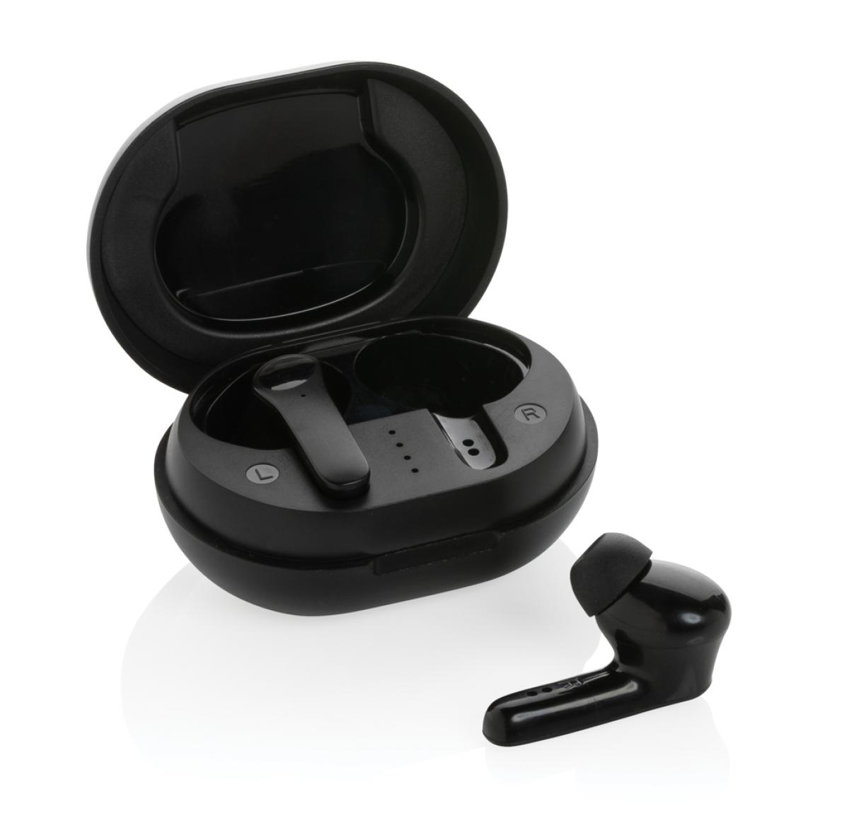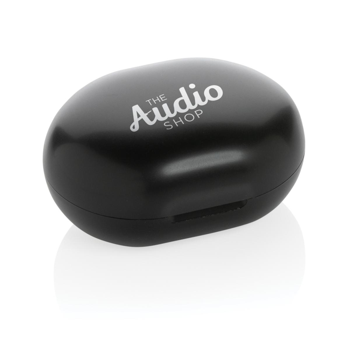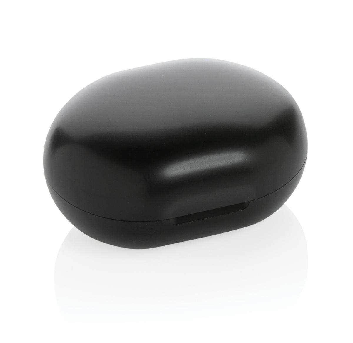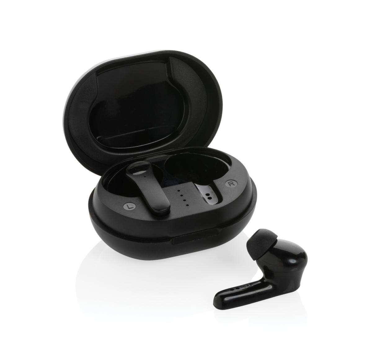 TWS earbuds where the the earbud and the charging case are made out of RCS certified recycled ABS plastic. RCS (Recycled Claim Standard) is a standard to verify the recycled content of a product throughout the whole supply chain. RCS is the standard that