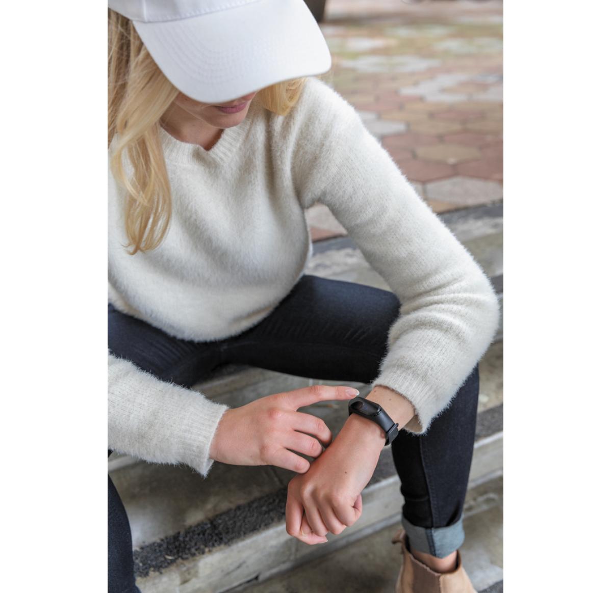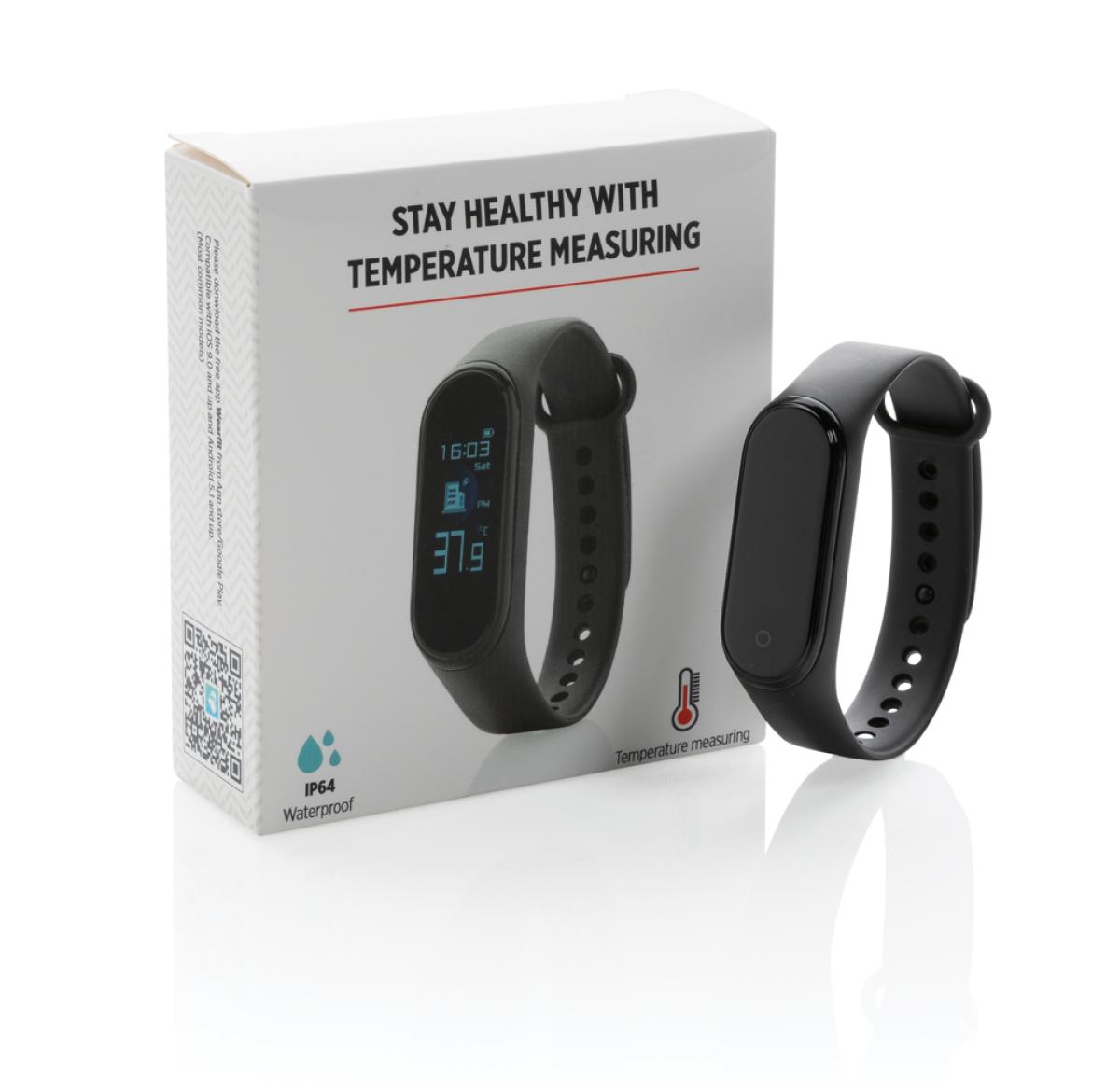 Always keep an eye on your body temperature and your general health with this bracelet with integrated body temperature sensor. ( up to max 0.2 degrees deviation) The bracelet has a 0’96 TFT colour screen. Functions: BT 4.2, IP67 waterproof, incoming cal