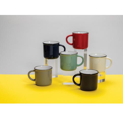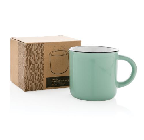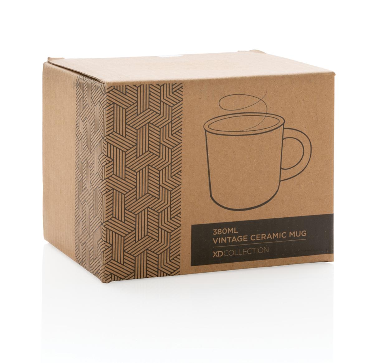 This mug is made from ceramic for durability and lasting use. The mug has a vintage look and features a curved handle for easy grip. Dishwasher safe in accordance with EN12875-1 (at least 125 washing cycles) for all decoration methods. Packed in gift box.