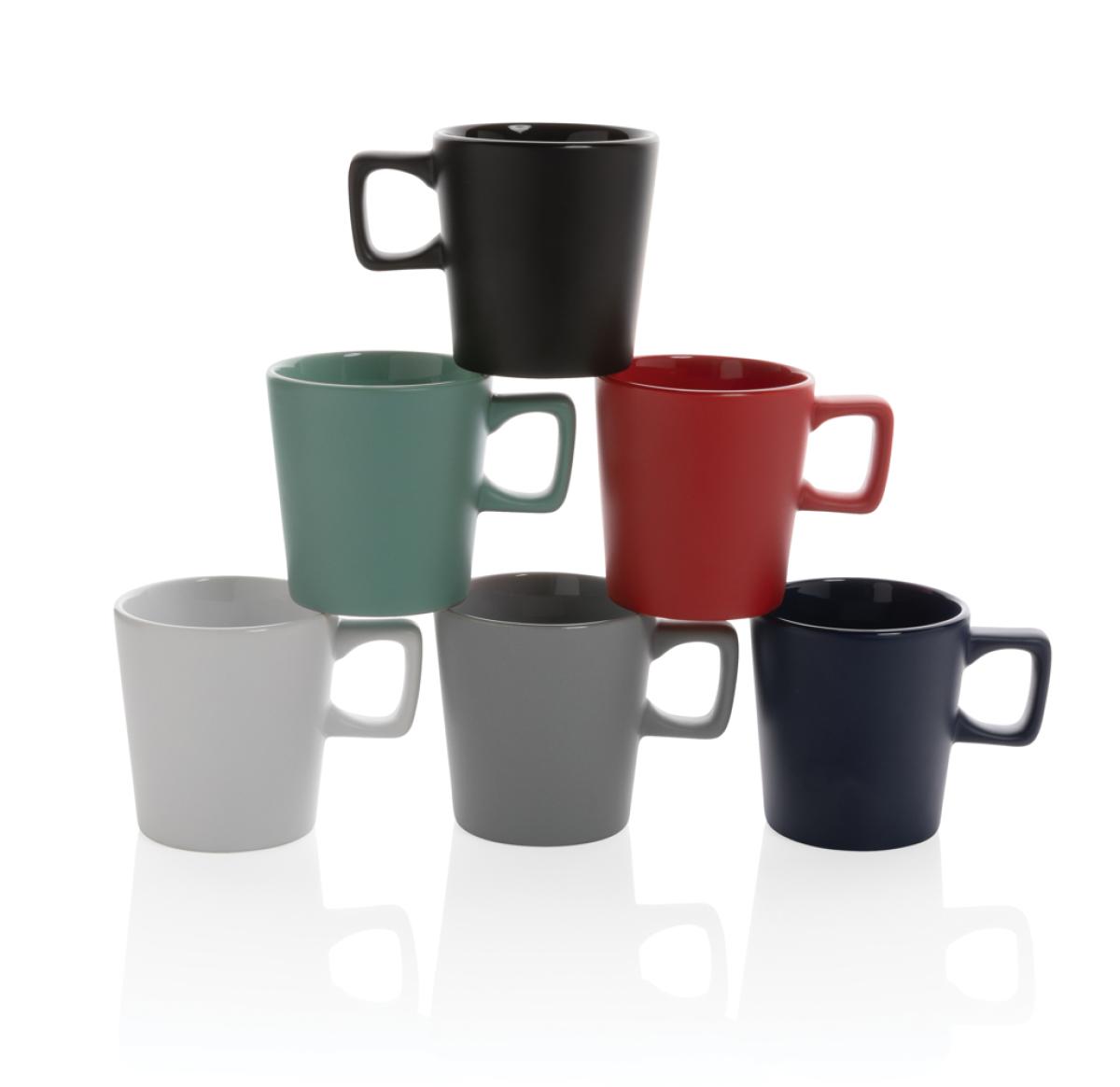 This ceramic mug looks good on any desk. The mug has a shiny inner finish and matt outer finish. The mug is dishwasher safe and tested in accordance with EN12875-1 (at least 125 washing cycles for all decoration methods). Packed in a gift box. Capacity 3