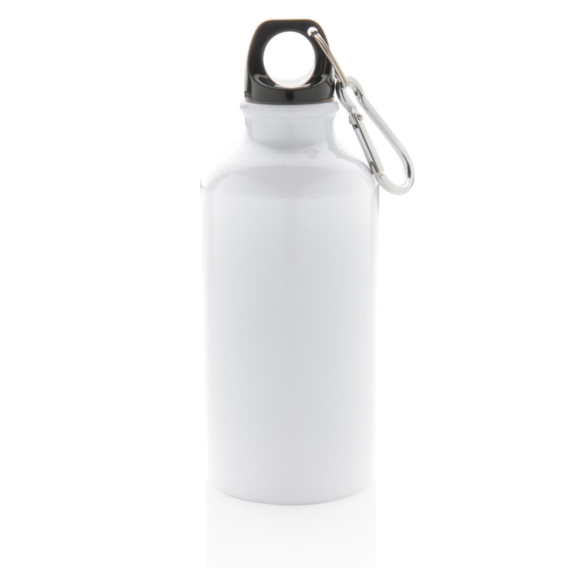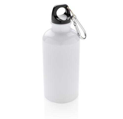 400ml Aluminium Reusable Sport Bottle With Carabiner - White