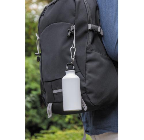 This 400ml aluminium bottle is the ultimate lightweight companion when hitting the outdoors. Attach it to any backpack with the handy carabiner. Also perfect when doing sports. For cold water only. BPA free.
