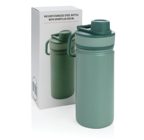 Printed Vacuum Stainless Steel Metal Bottle With Sports Lid 550ml Green