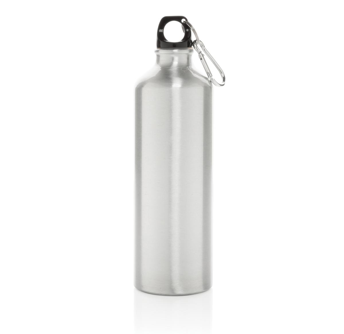 Branded XL 750ml Aluminium Waterbottle With Carabiner - Silver