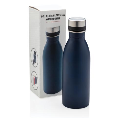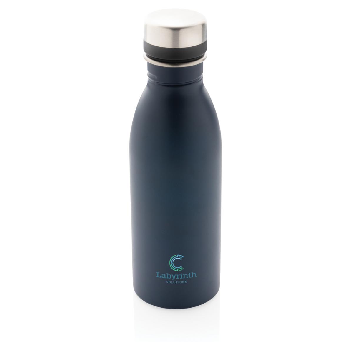 Printed Recycled Stainless Steel Deluxe Metal Water Bottle 500ml Navy Blue