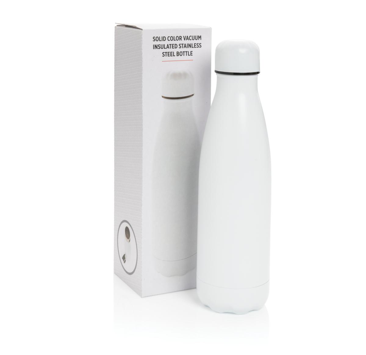 Branded Solid Colour Vacuum Insulated Stainless Steel Water Bottles 500 Ml - White Chilly Style